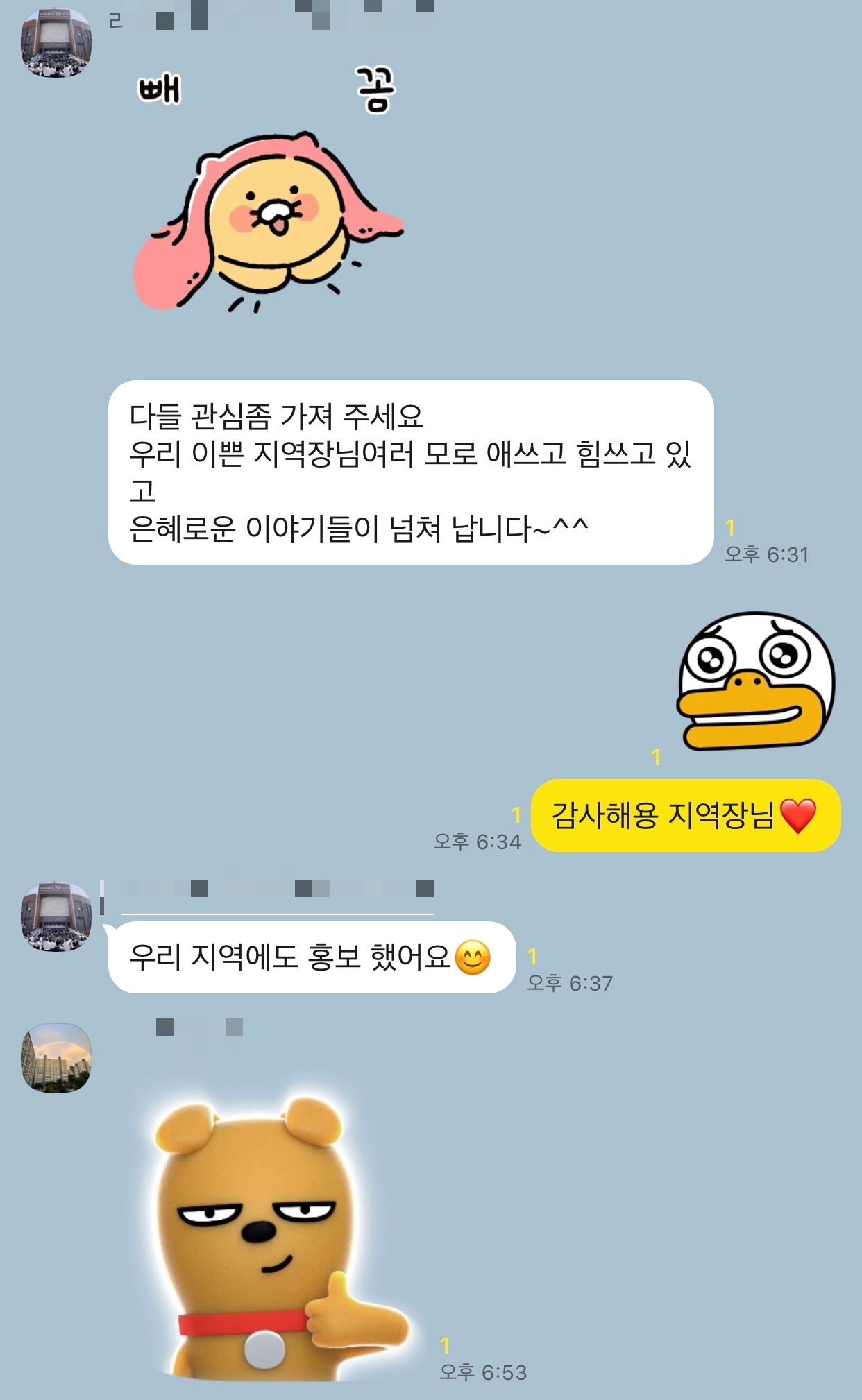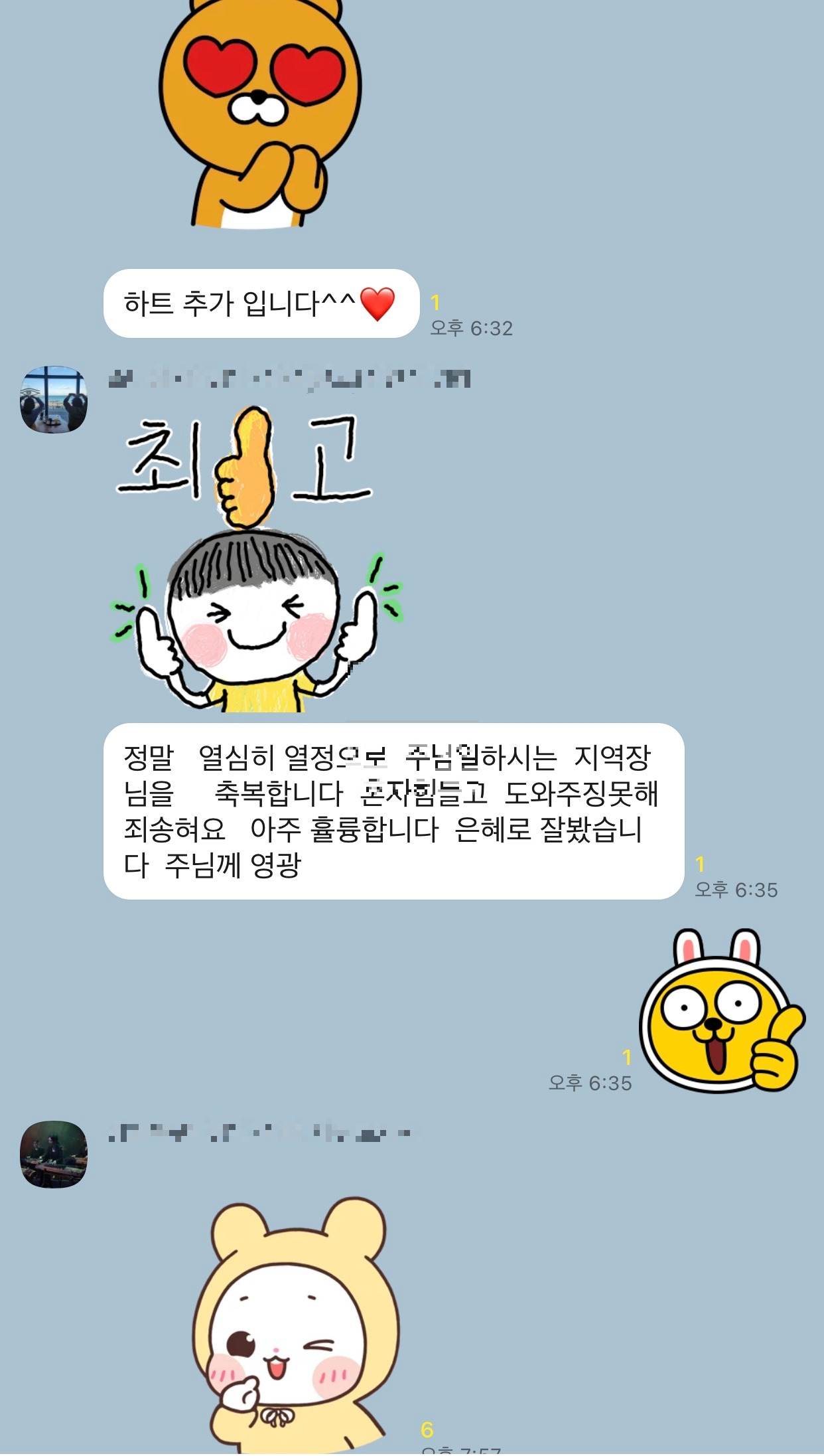 그리고 쏟아지는 지역장님들의 축복의 메세지들...