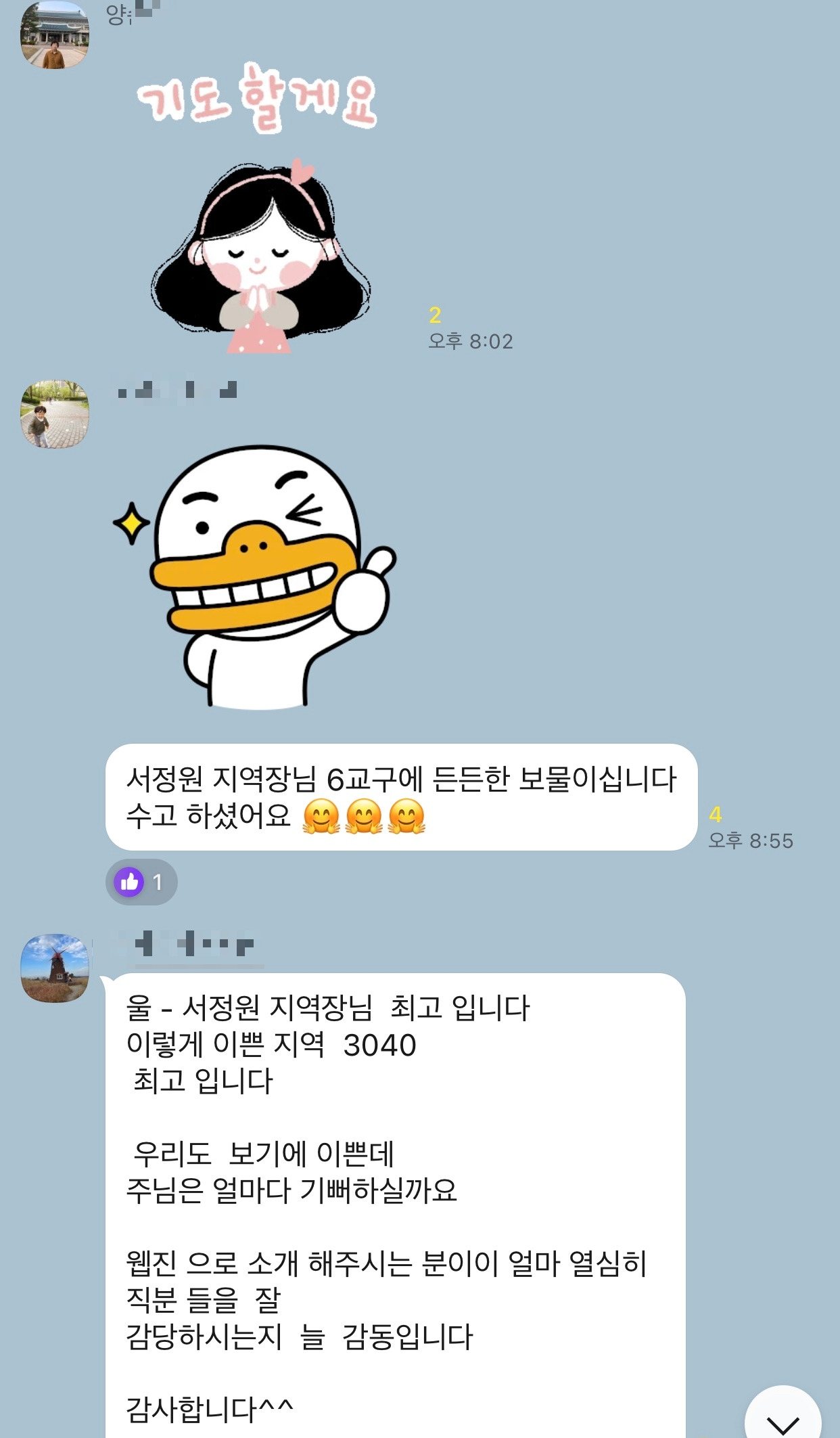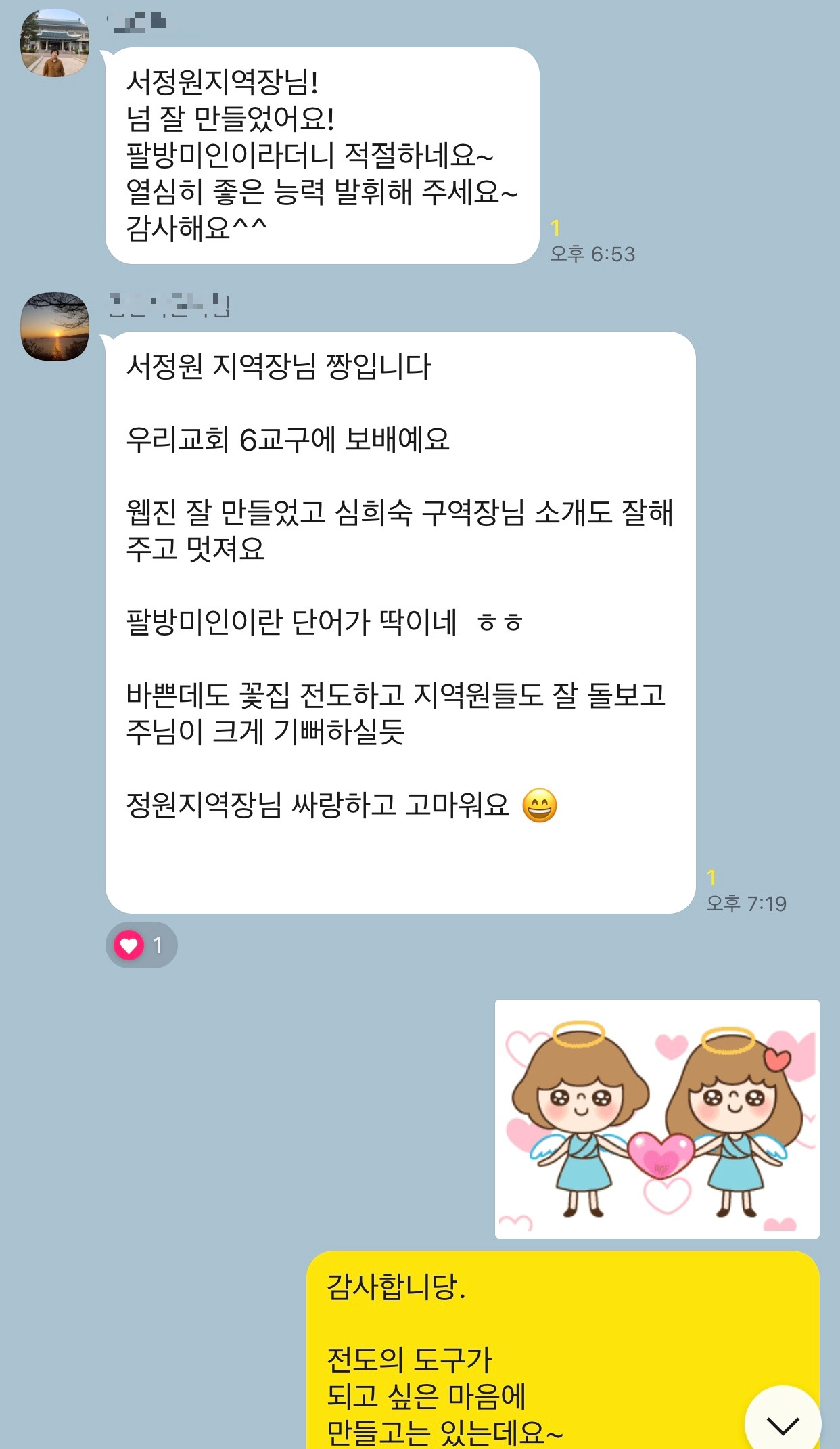 나의 수고를 칭찬해주시고, 내가 지칠까봐 나를 세워주시는 많은 지역장님들에게 감사하다.