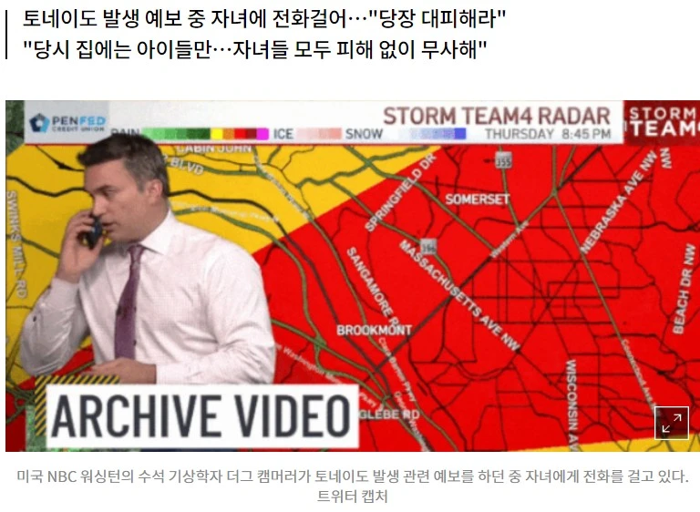 "토네이도가 지나가는 지역이 우리 집에서 매우 가깝다." 라고 말을 이었다.