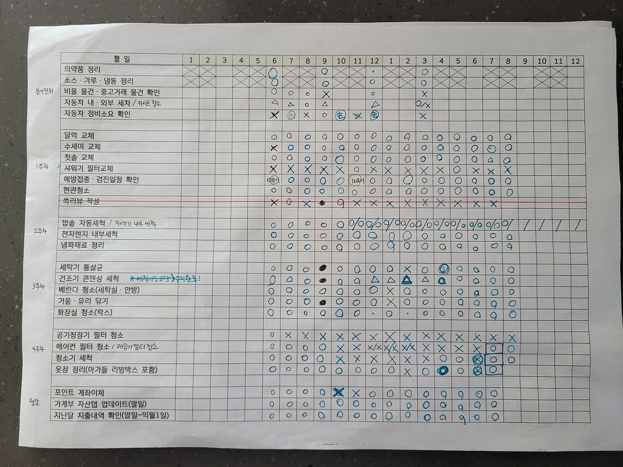 근데 나의 체크리스트는 좀 달랐다. 해야 하는 집안일을 '주기에 맞게 딱 한 번만 하기' 위한 목적이 컸다.