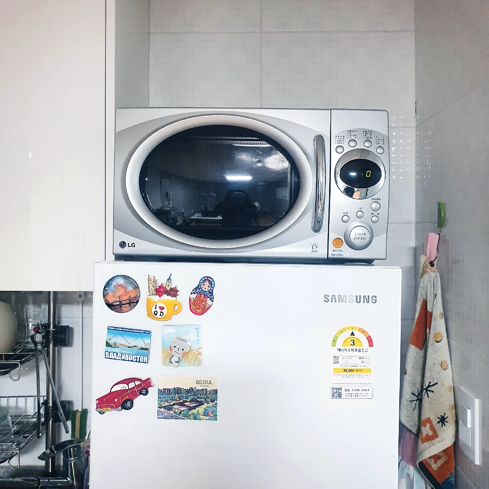 6) 전자레인지(전 자취방에서 맛들린 후 필수템이 되어 구매. 대신 중고로 저렴하게~)