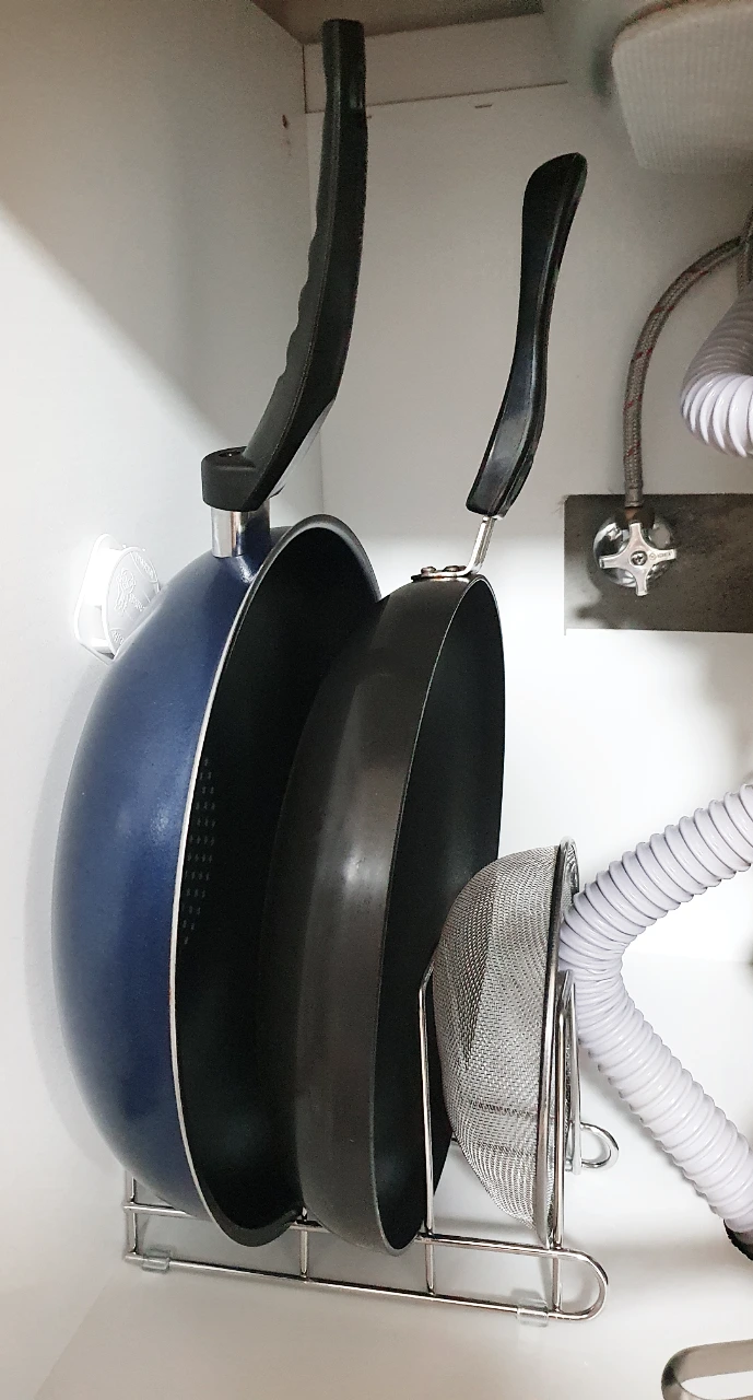 12) 프라이팬 정리대(싱크대 밑 수납공간을 마련하기 위해 구매)