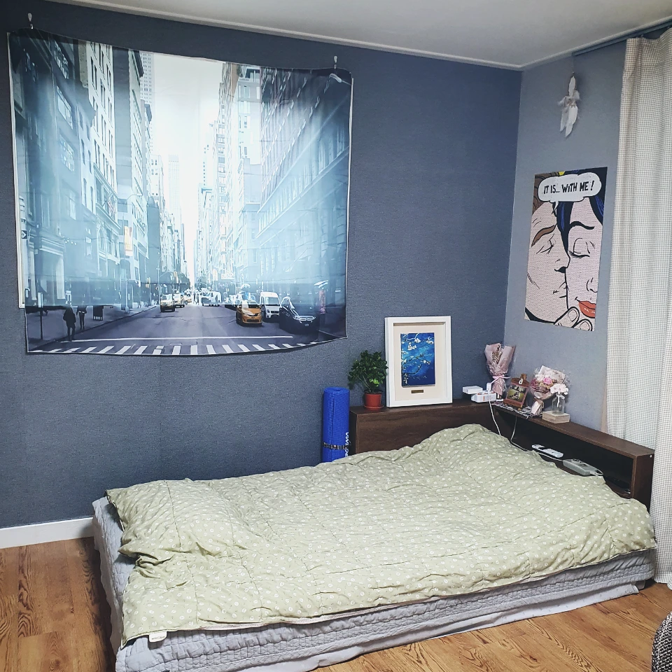 8) 대형 패브릭 포스터(방 안 창문에 달려고 구매. 커튼보단 가성비 좋다고 생각...)