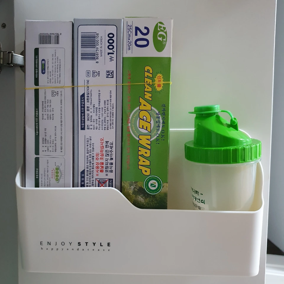 2) 싱크대 물막이 행주 걸이 겸용(싱크대와 냉장고 사이 틈이 있어 그곳으로 물이 튀면 곰팡이가 생길 수 있기에 반드시 사야만 하는 물건이었다.)