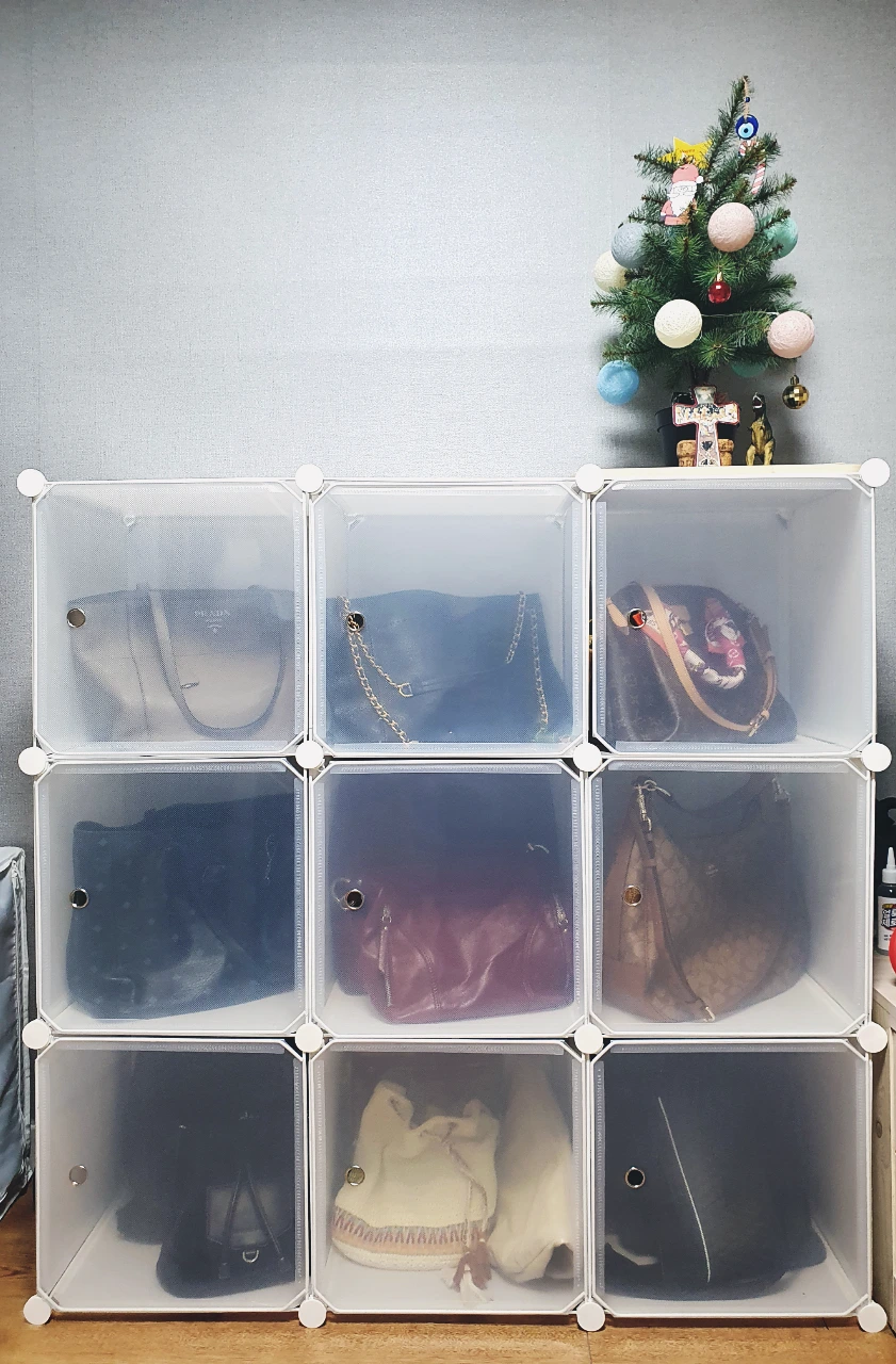 10) 가방 정리함 9칸(얼마 없는 거라도 명품가방을 잘 보관하겠다며 구매)