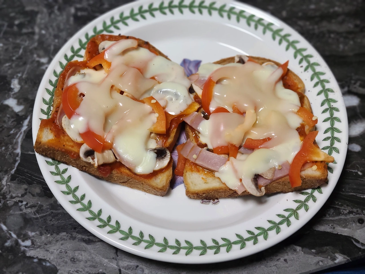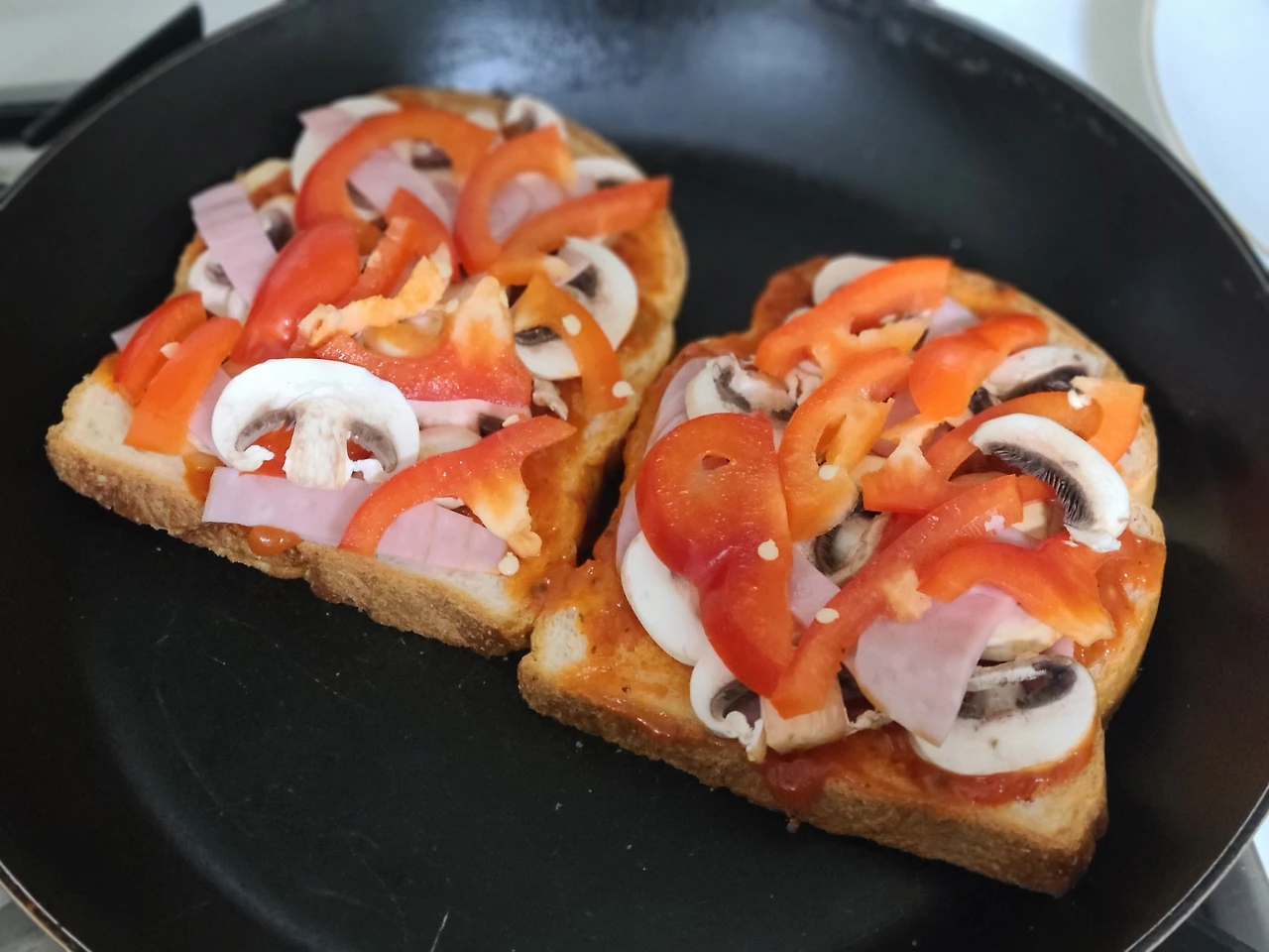 프라이팬에 올려두고 뚜껑을 덮어둔 후 약불로 30초 정도 해두면 식빵의 아랫면이 노릇해진다. 이후 전자레인지로 옮겨서 1분 30초 정도 데워주면 치즈도 녹아서 따뜻한 식빵피자가 완성된다.