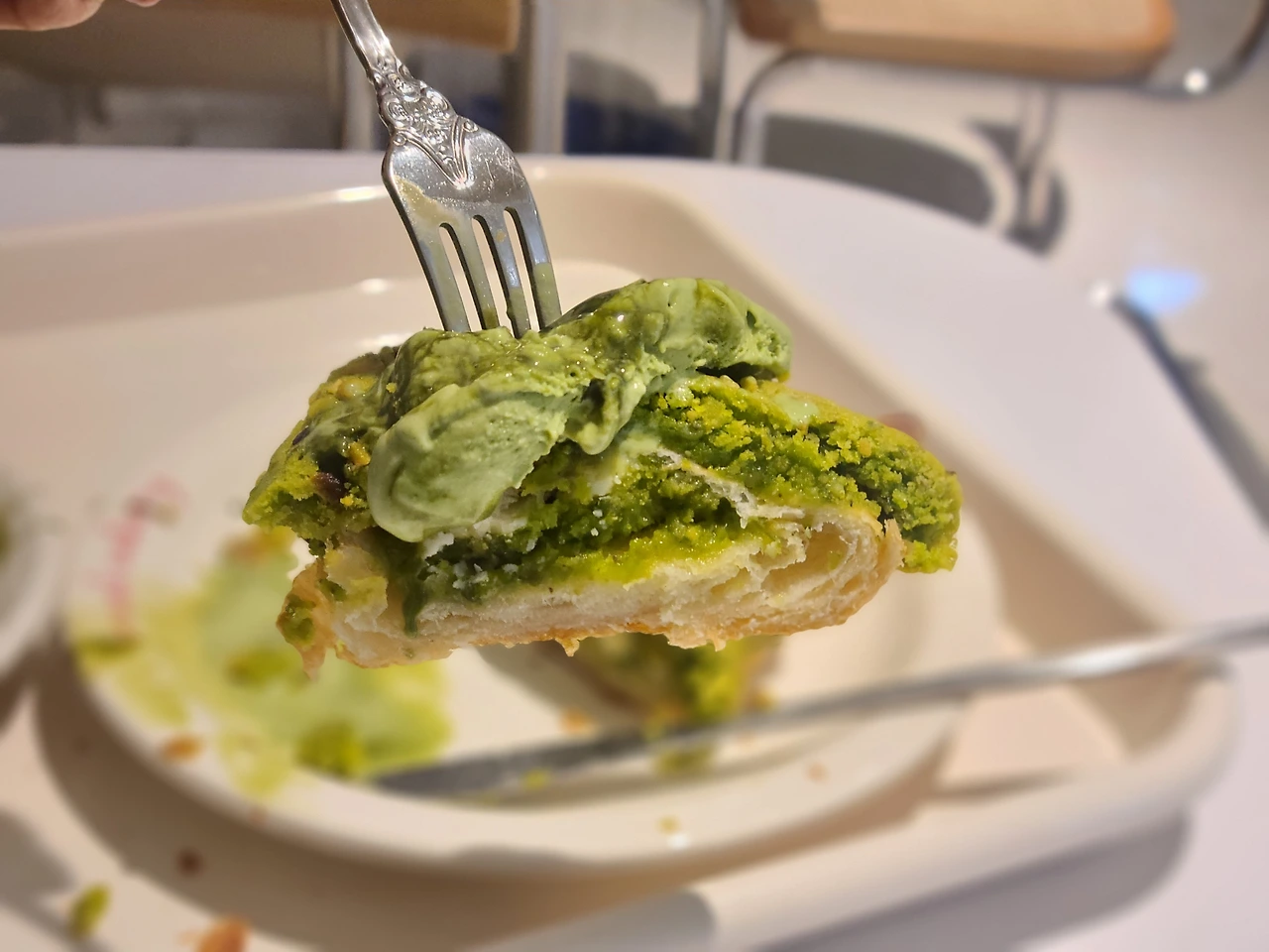 우연히 말차아이스크림으로 유명한 카페에서 크루키를 함께 먹었는데 크루키 위에 아이스크림을 얹어 먹으니 차가운 아이스크림과 따뜻한 크루키의 조합이 요물이었다.