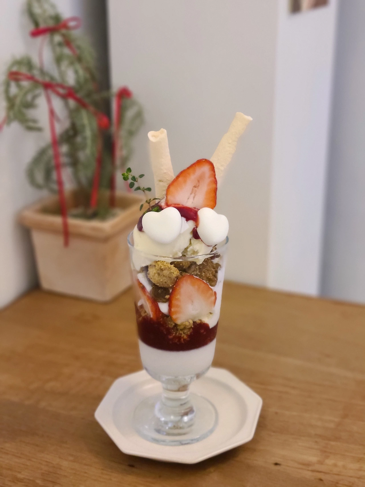 어릴 적 먹던 파르페는 마트에서 파는 3색 아이스크림과 웨하스, 빼빼로 등의 과자가 장식된 다소 획일화된 모양이었다면 요즘의 파르페는 한참을 감상하게 된다.