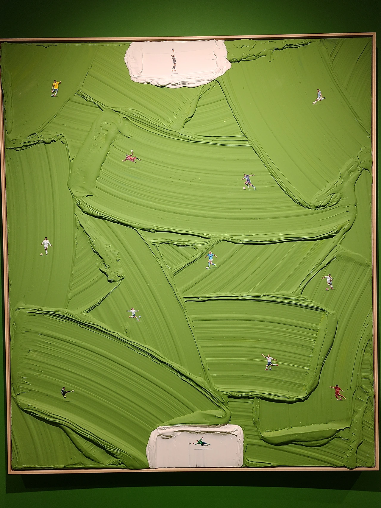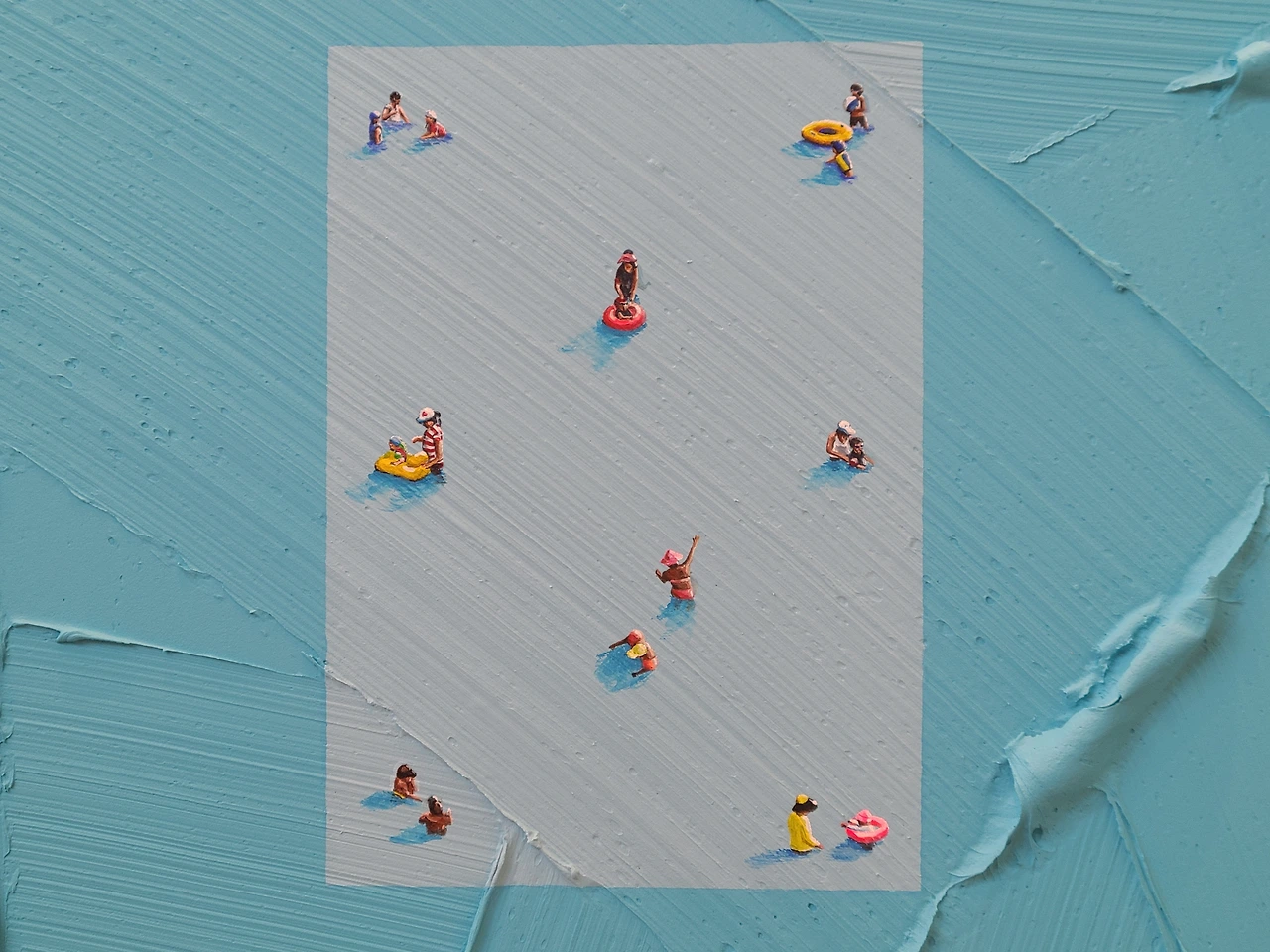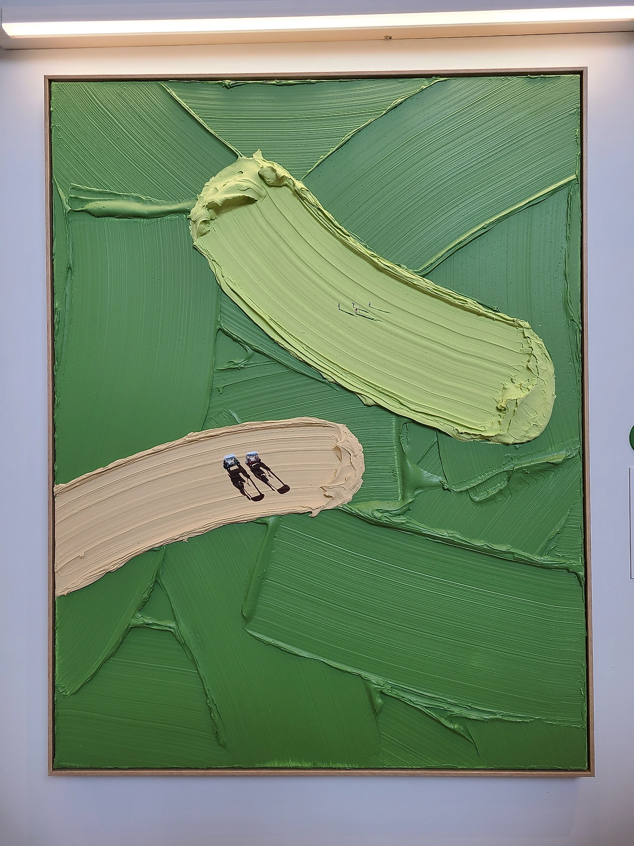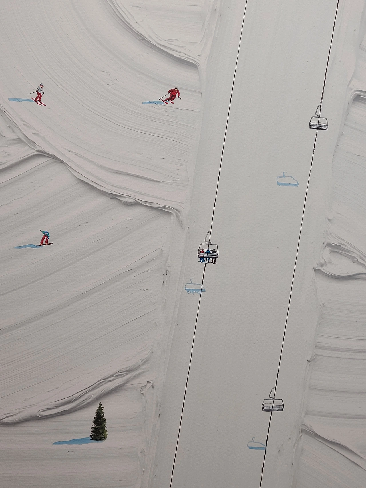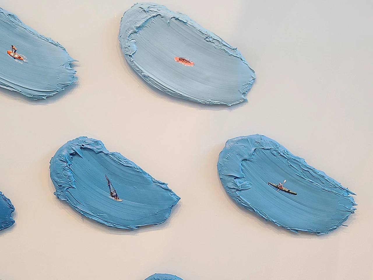 캔버스에는 두툼한 붓자국이 남아있는데 붓이 지나간 자리는 물살이 되기도 하고, 바람에 흩날리는 잔디밭이 되기도 하며 특유의 느낌을 더해준다. 그 세상 안에서 각자의 일상을 즐기는 사람들의 모습이 인상적이고 굉장히 디테일해서 놀랍다.