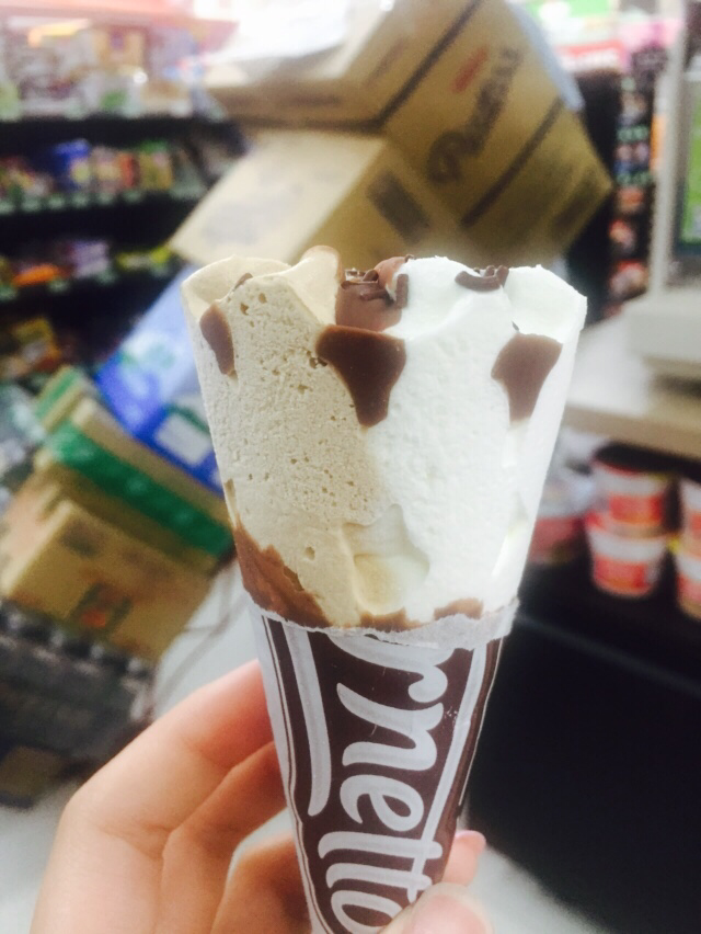 숙소에서 밤에 다시 나와 편의점에서 아이스크림 하나를 사 먹었다.