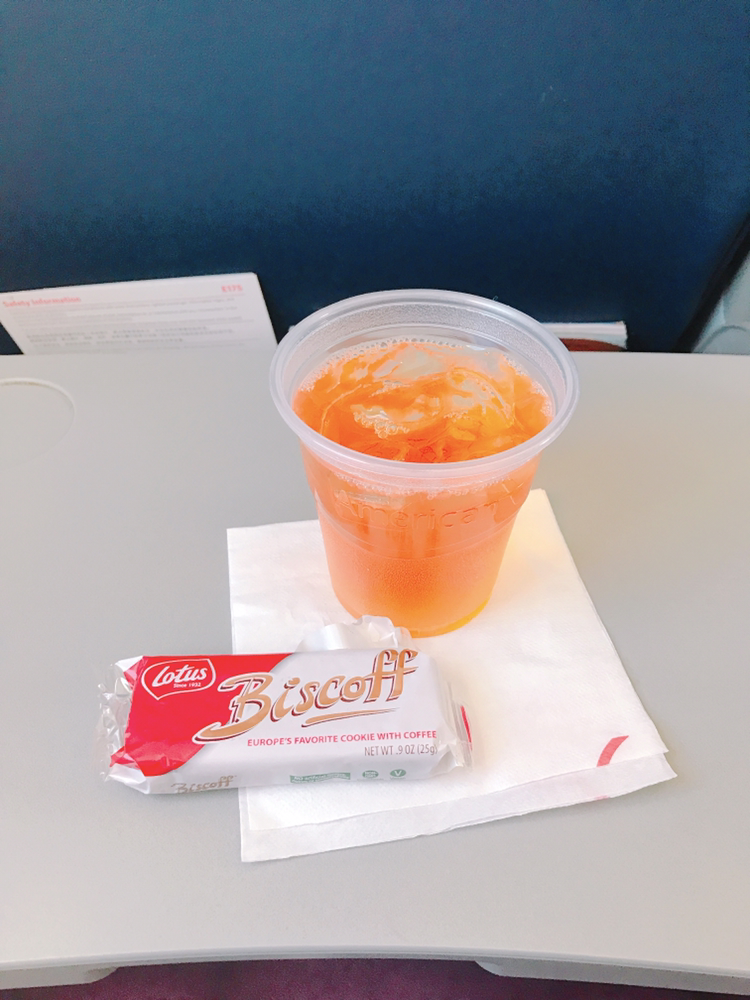 국내선의 짧은 비행인데도 맛있는 쿠키와 사과쥬스