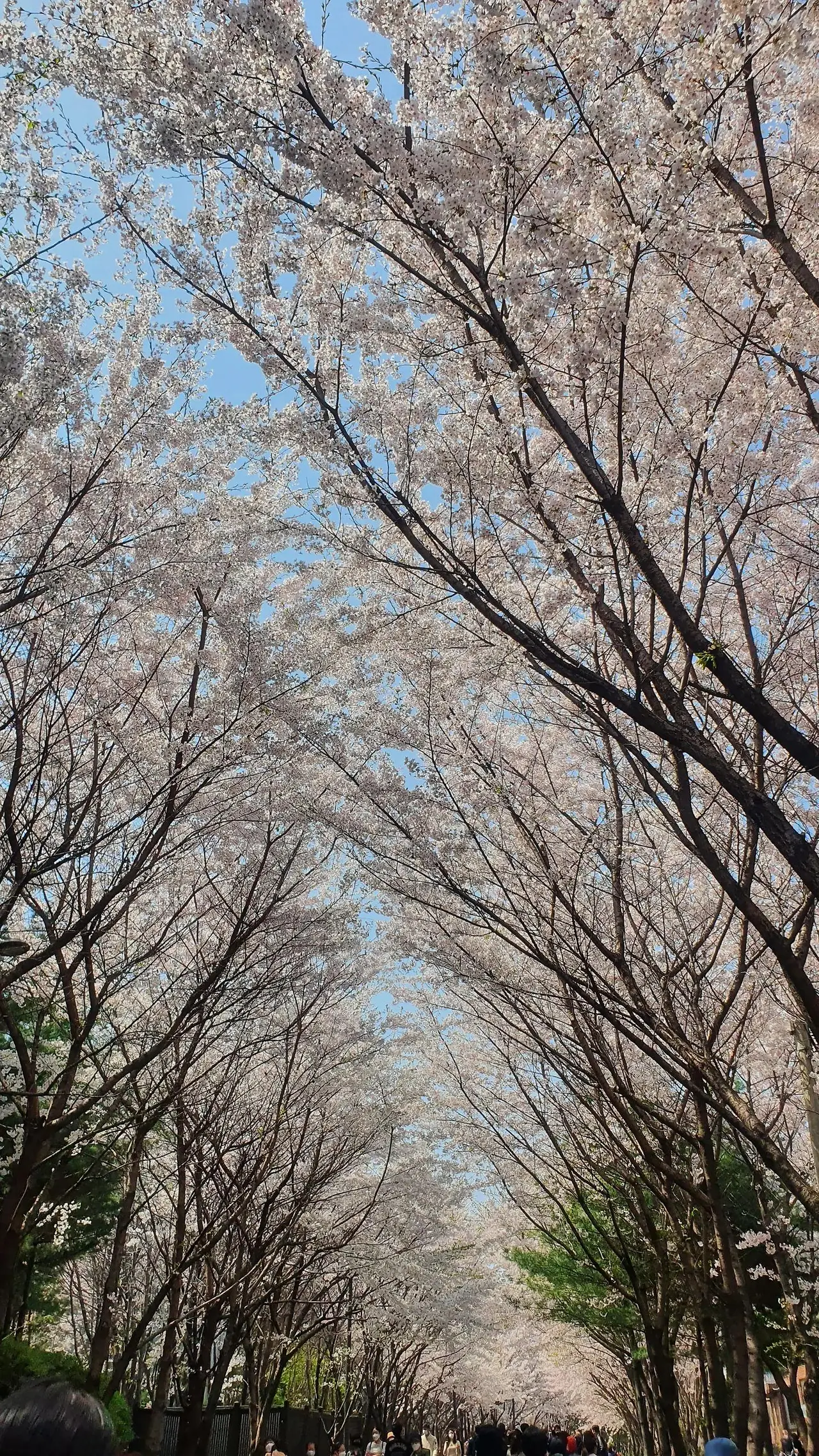 사람들이 점점 많이 지나다녀서 산책로는 앵글에서 뺐다. 그래도 구도 위 끝까지 뻗어가는 나뭇가지와 꽃잎들 덕분에 이상하지 않다.