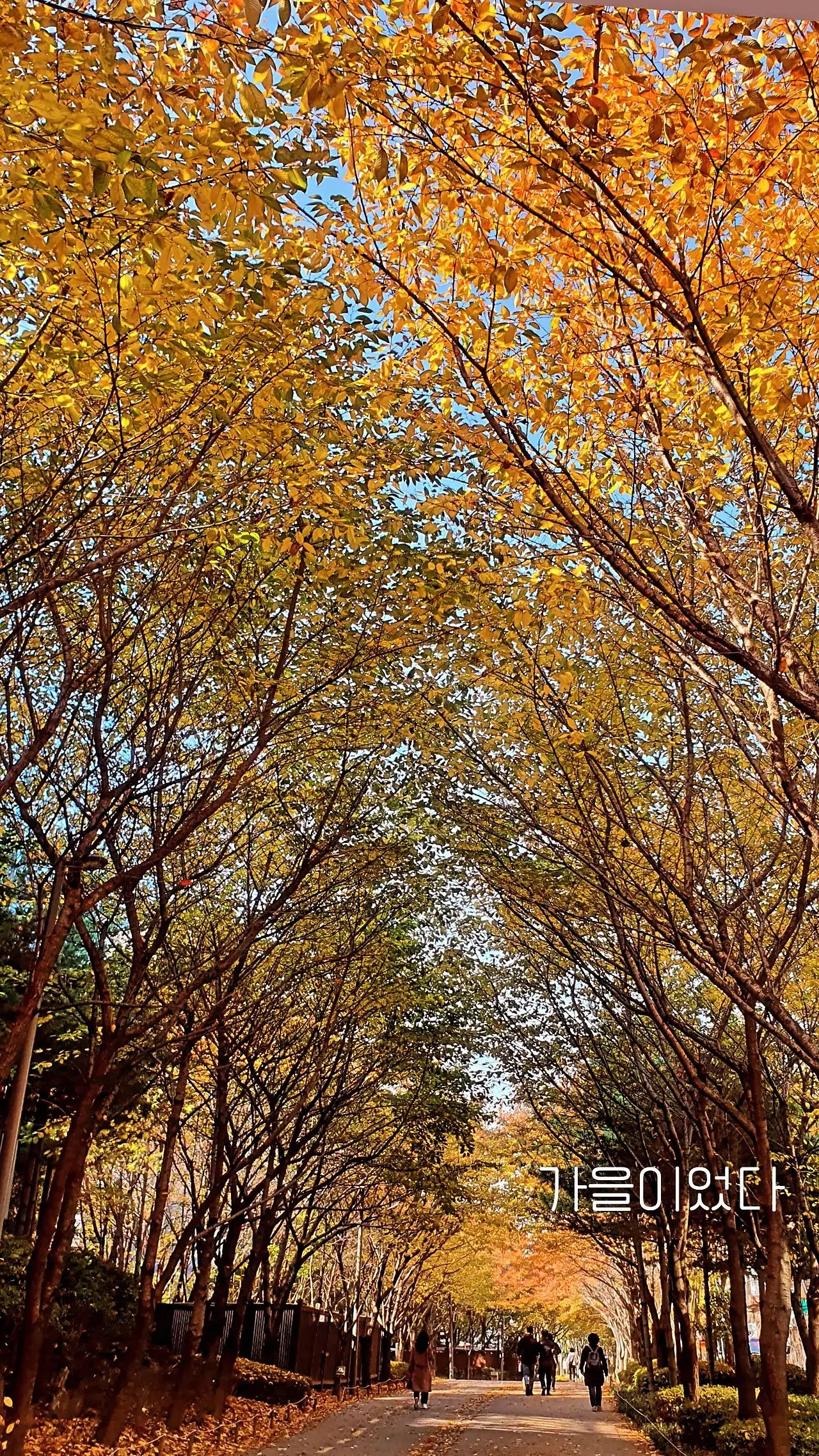 가을 그 자체의 길이다. 의도하지 않았지만 같은 자리에서 카메라를 꺼냈다. 낙엽들이 만든 따뜻한 숲 터널. 이 지점을 지나면 나도 모르게 간직하고 싶었나 보다.