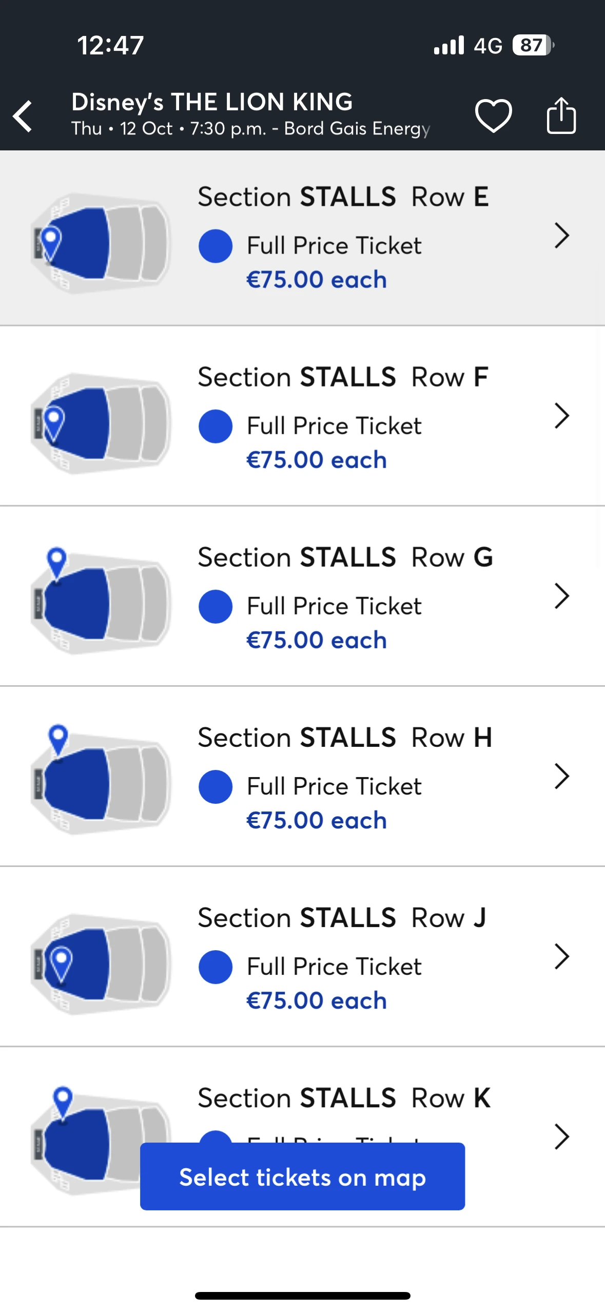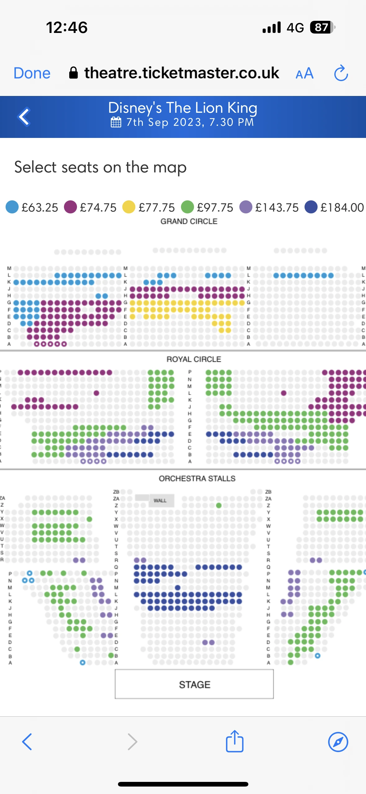 다음의 예는 Musical Lion King의 티켓 값의 예시로 왼쪽은 영국이고 오른쪽은 아일랜드 공연의 가격이다.