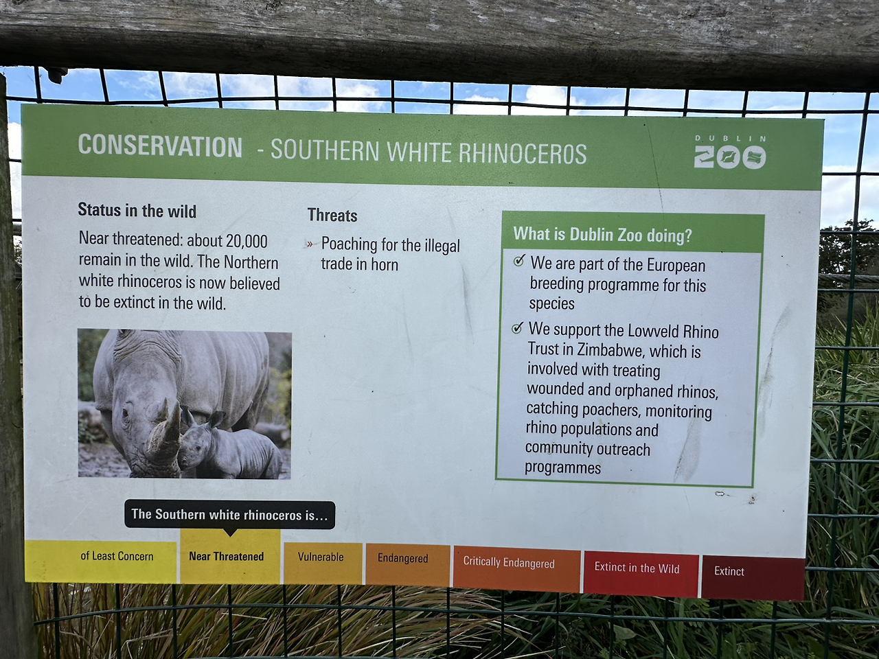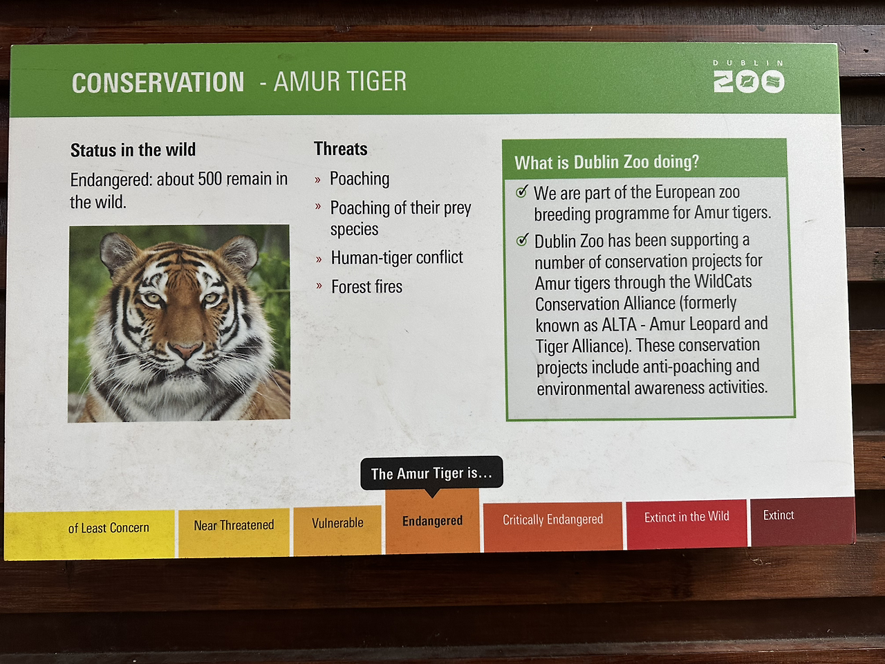 더블린 동물원에서 인상적인 부분은 누구나 쉽게 알아볼 수 있는 표와 안내문이었다. 예를 들어 현재 이 동물이 야생에서 어느 상태로 존재하며, 멸종 상태와 위협이 되는 부분 그리고 이 동물들을 어떻게 관리하고 중점적으로 케어하고 있는지를 쉽게 표로 정리한 부분이 참 마음에 들었다.