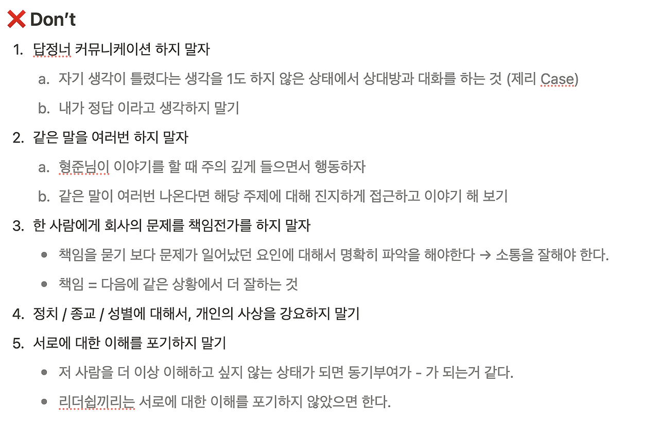 우리는 노션을 키고 서로 Do & Don't 리스트부터 작성을 했다.