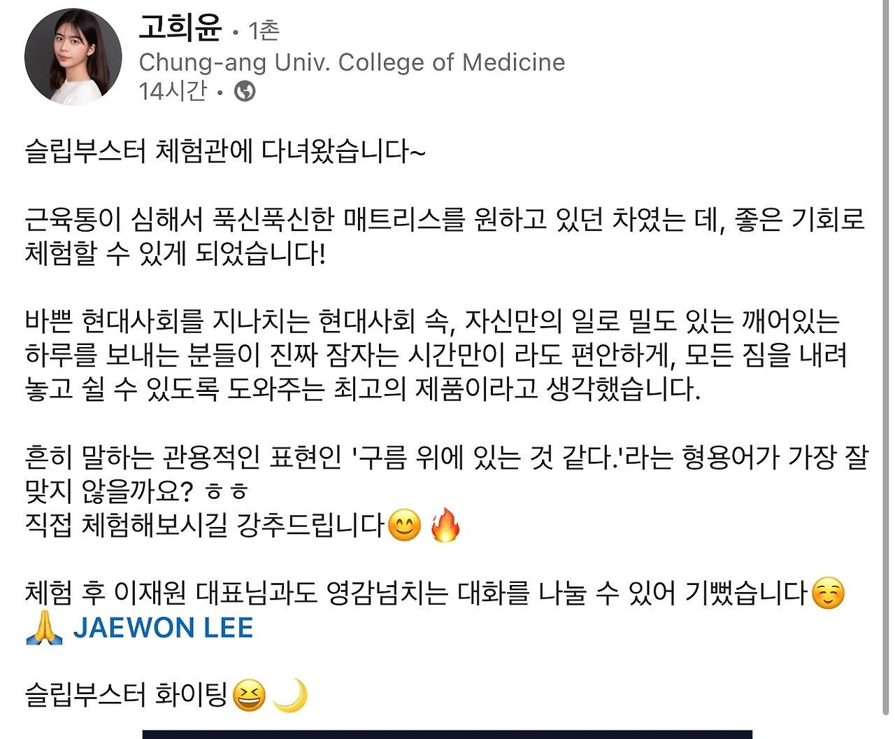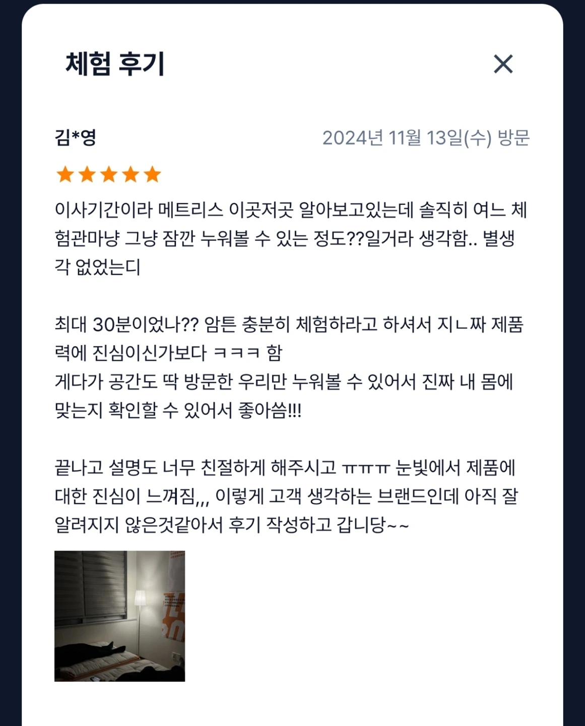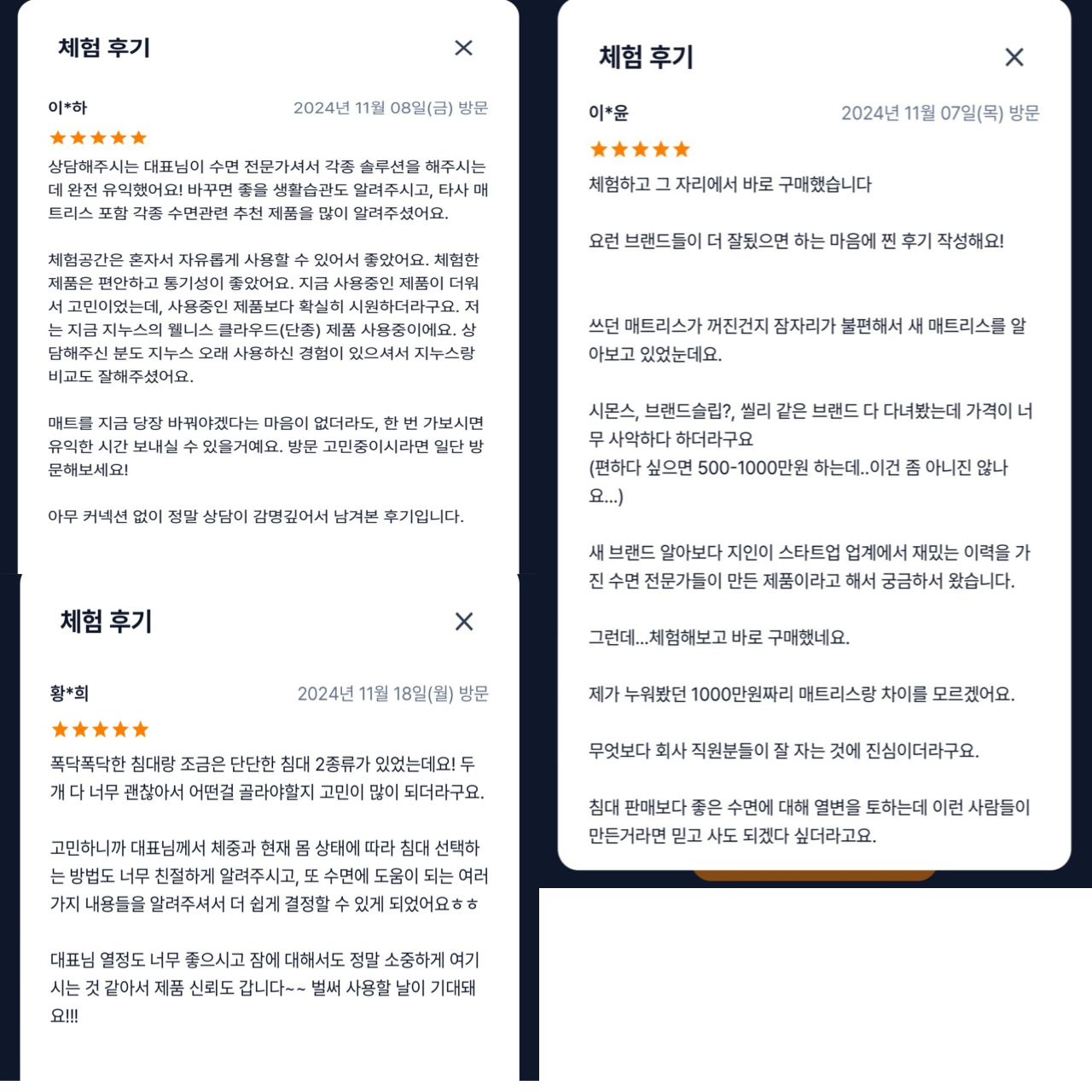 정말 다행히도 매트리스 체험 및 수면상담을 받았던 고객님들의 반응은 모두 좋았습니다.
