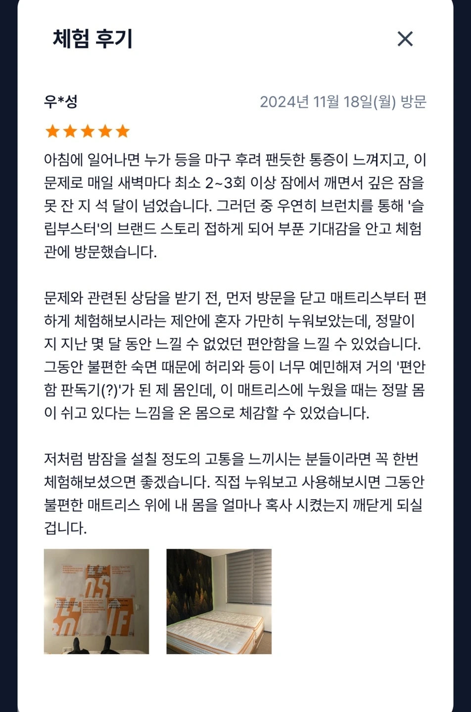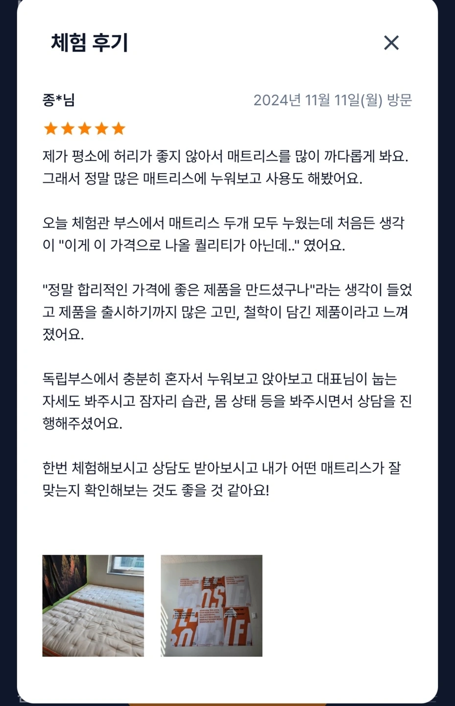 결과 : 부담 없이 나한테 맞는 매트리스인지 편히 누워보고 결정할 수 있게 만들었습니다.