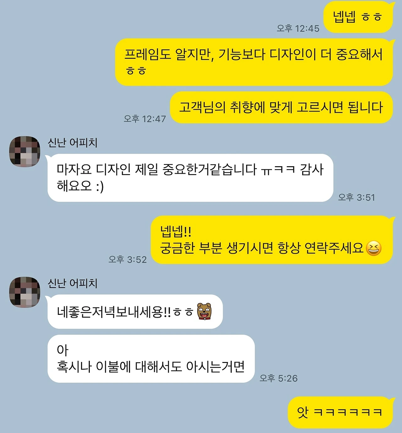 그래서일까요. 저희는 제품을 배송한 이후에도 고객과 꾸준히 대화를 이어가는 경우가 많습니다.