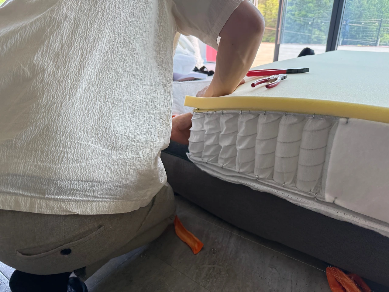 그리고 공장 담당자님과 함께 매트리스를 해체하며,
