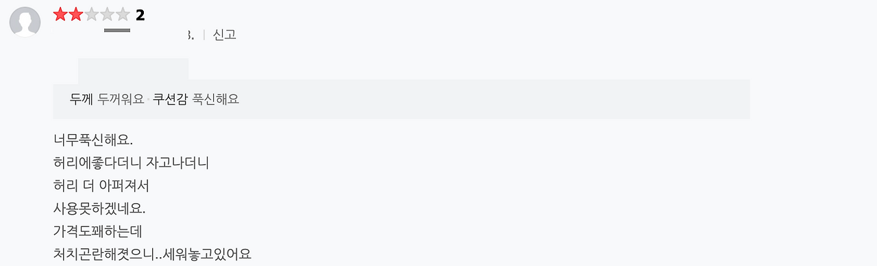 시장에서 판매되고 있는 고가 토퍼들의 1점짜리 리뷰를 체크하며, 고가 제품들의 문제점들을 보완하기 위한 착와감 연구를 했습니다.