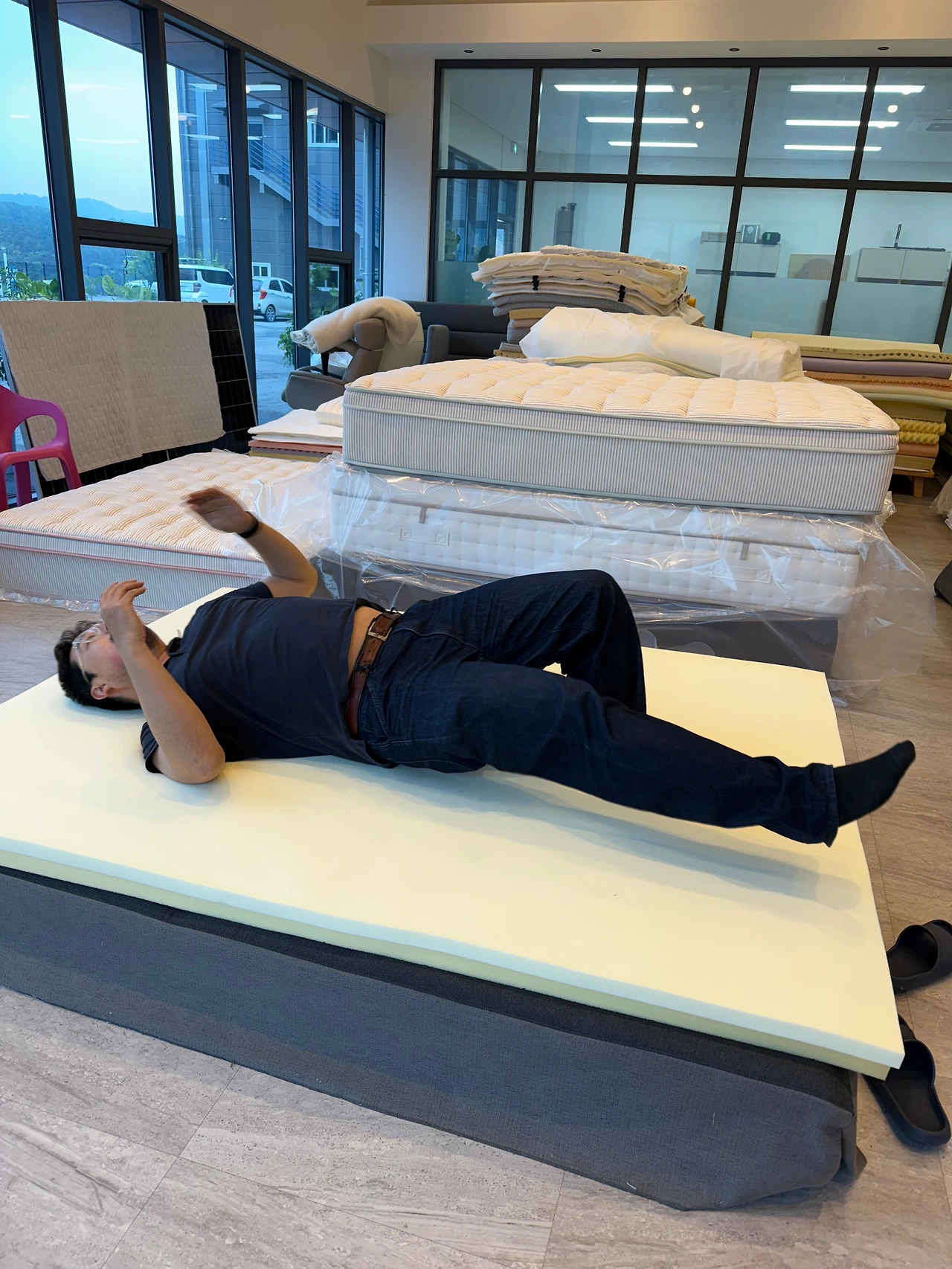 직접 공장에서 미친 듯이 누워보며 착와감을 테스트했습니다.