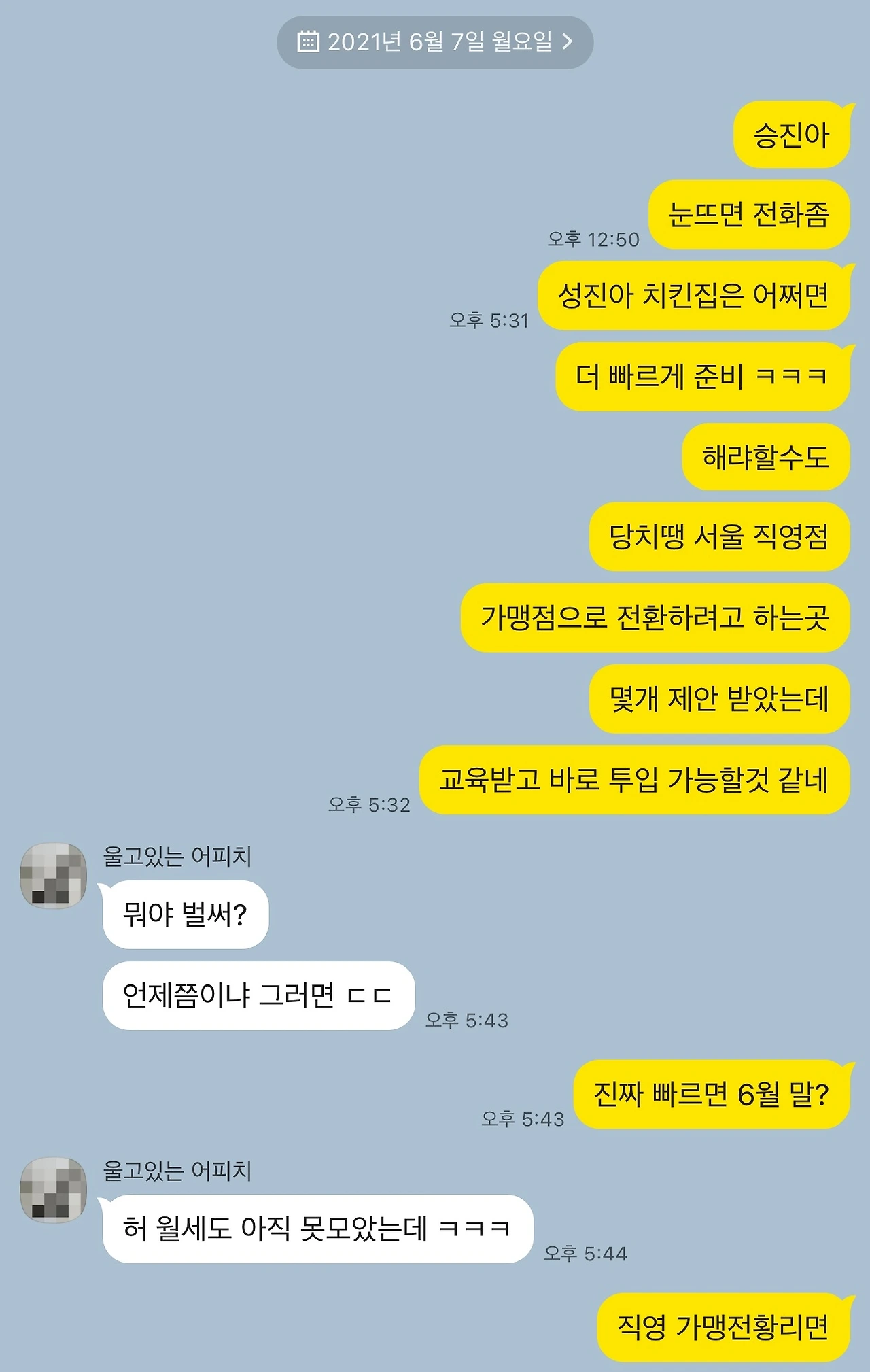 최근에 치킨 프랜차이즈를 운영하는 형님에게 계속 연락을 받을 때였다.