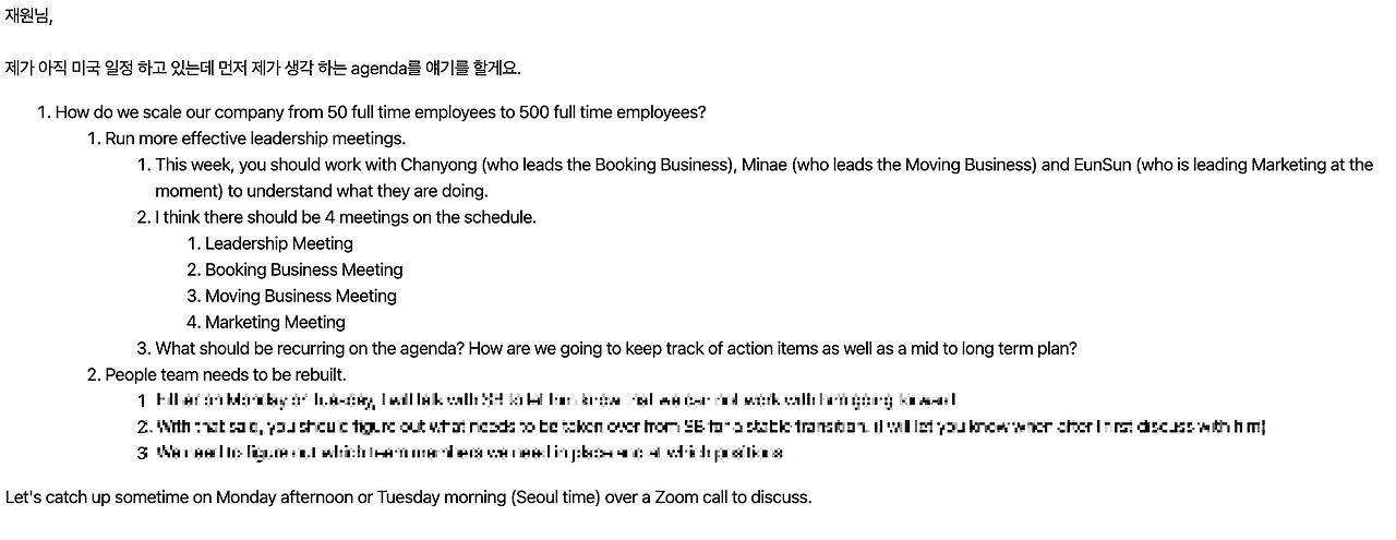 나는 Chief Of Staff (비서실장) 으로 첫 출근을 했고, 빅터님에게 받은 첫 Agenda 는 다음과 같았다