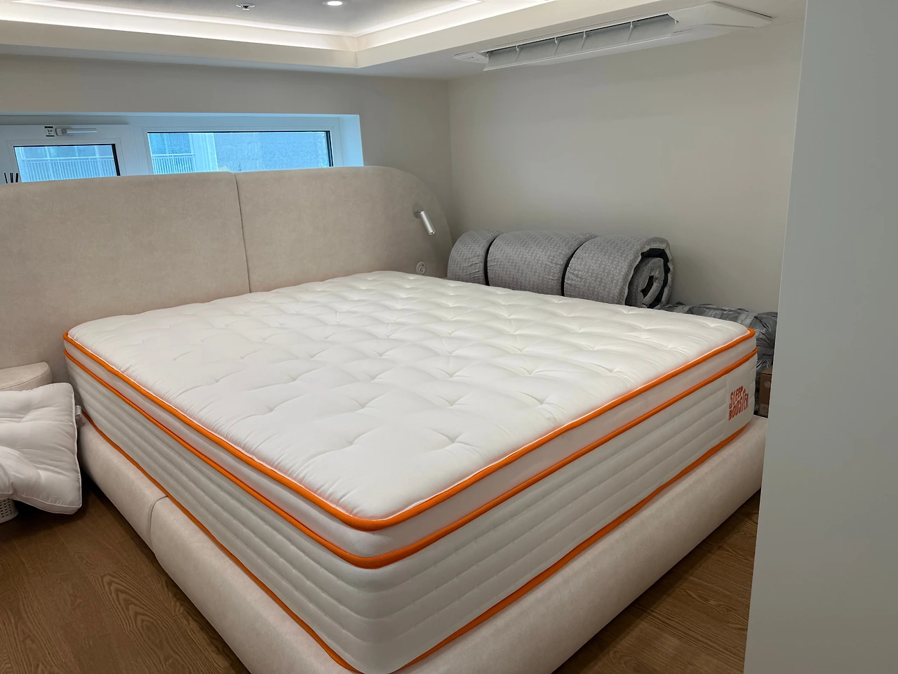 슬립부스터 매트리스는 여기에 설치하는 건 4명에서 해도 굉장히 난이도가 높은 일입니다.