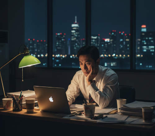 직장에서 하루 종일 몰입해서 일하는 직장인 혹은 사장님,