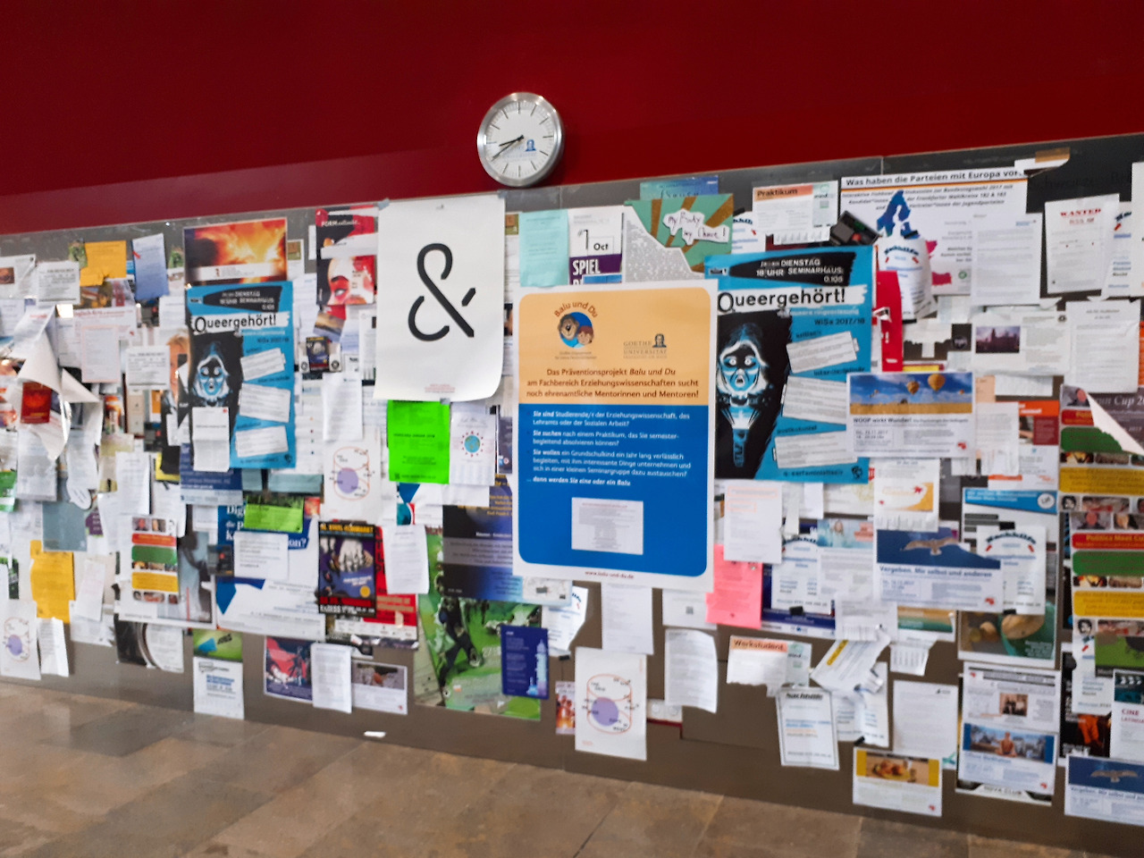 역사와 전통은 솔직히 모르겠고(실은 별로 관심도 없었고), 대학 건물이 신식 건물이여서 그저 부럽게 구경했습니다. 공대생 출신인 저는 이상하게 신식 건물에서 실험하는 학생들이 부럽더군요. 건물 이 곳 저 곳을 구경하다보니, 열린 강의실 문 틈에서 아침 수업을 듣는 학생들도 볼 수 있었고, 학생 회관 같은 곳에 다양한 포스터들이 빽빽하게 전시되어 있었습니다. 뜻하지 않게 방문하게 된 프랑크 푸르트 대학교였지만, 여행 시작부터 남들과 다른 신선한 출발이었습니다.