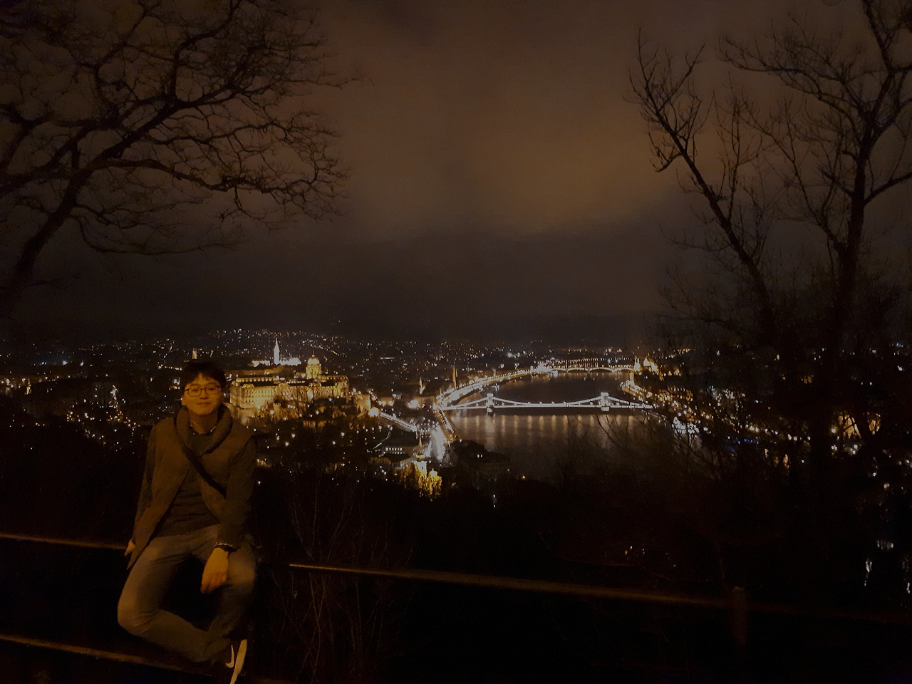 식사 후에는 다 같이 야경으로 유명한 겔레르트 언덕으로 향했습니다. 언덕에 도착해 보니 그 유명한 부다페스트의 야경이 쫘-악 펼쳐졌습니다. 처음 바라본 그 모습의 느낌은 '아, 사진이랑 똑같다. 과장이 별로 없구나.'였습니다. 연한 가로등 빛과 회색빛이 공존하는 하늘. 그리고 하늘보다 좀 더 어두운 강과 그 덕에 더 눈에 띄는 대교. 강 너머 펼쳐진 조명들. 파란 모습으로 기억에 남은 프라하와는 전혀 다른 야경의 모습에 잠시동안 멍-하니 넋을 놨습니다. 그리고 그날 따라 바람이 좀 불어서 그런지, 시간이 엄청 늦지도 않았는 데 사람이 별로 없었습니다. 덕분에 야경에 좀 더 집중할 수도 있었습니다.