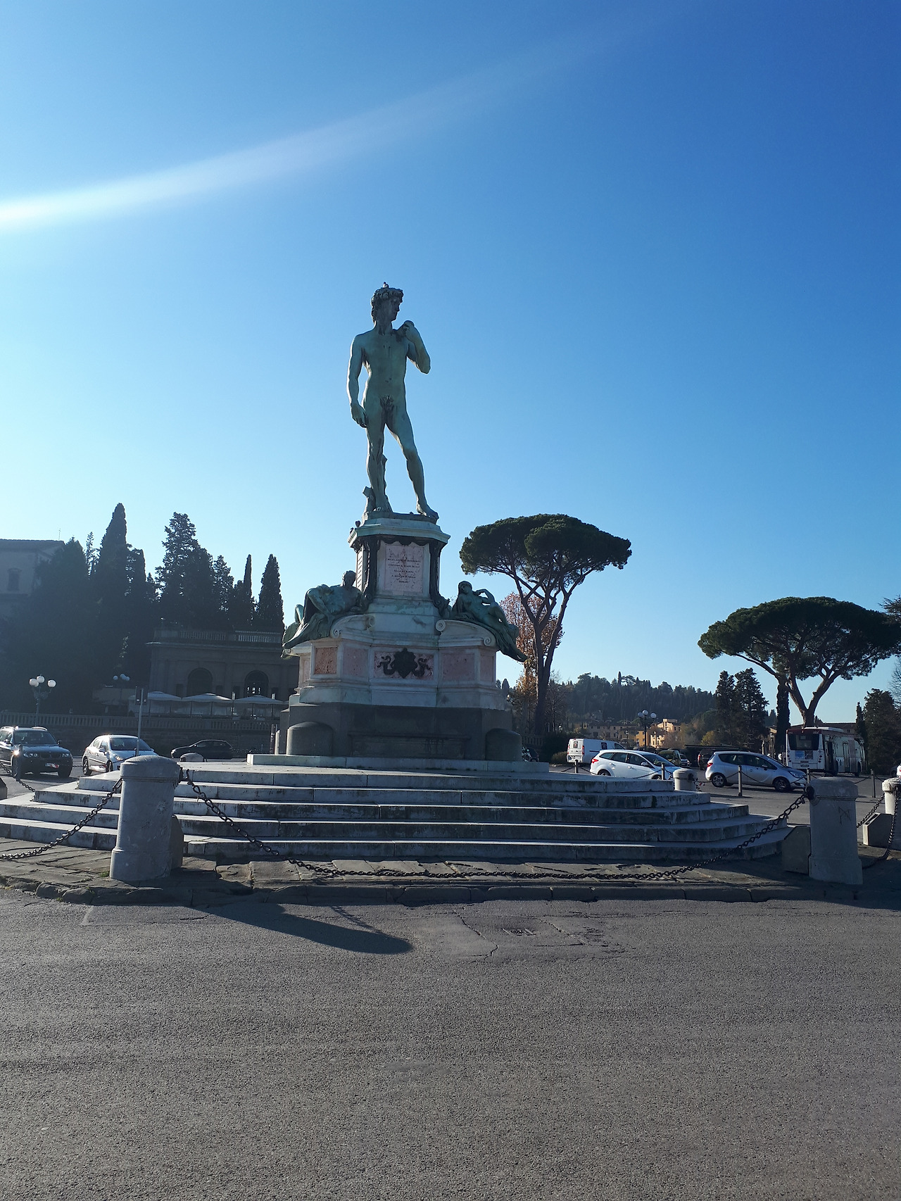 피렌체 중심을 돌아다닌 후, 일몰을 보기 위해서 미켈란젤로 언덕으로 향했습니다. 두오모 성당에서 걸어서 한 30~40분 정도 되는 곳에 있는 곳인데, 저는 미켈란젤로가 유명해서 언덕 이름을 이렇게 지었나 싶었습니다. 그런데 가서 보니 언덕 위 광장 같은 곳에 미켈란젤로 작품으로 유명한 다비드상(모작)이 전시되어 있는 걸 보고 '아, 이름을 정말 잘 지었네.'라고 생각했었습니다. 시간을 맞춘 덕분에 피렌체의 낮과 밤 모두 볼 수 있었습니다. 프라하, 부다페스트와 다른 점이 있다면 앞서 두 도시의 언덕에서 야경을 볼 때는 포커스 되는 건축물이 없었지만, 피렌체에서는 두오모 성당을 중심으로 경치를 구경할 수 있었습니다.