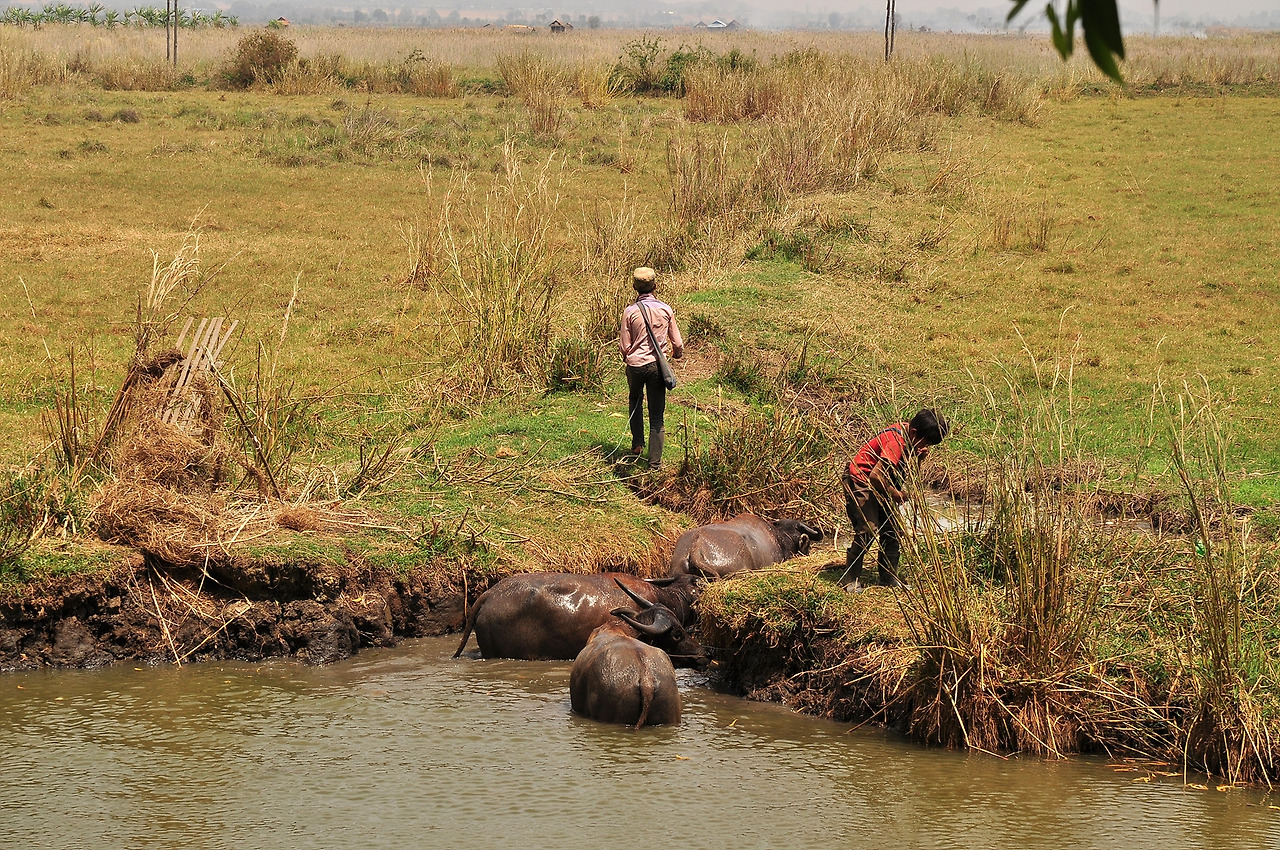 소를 모는 아이들이 보입니다. 그런데 소가 우리나라와는 조금 다르기에 자세히 보니 물소입니다.