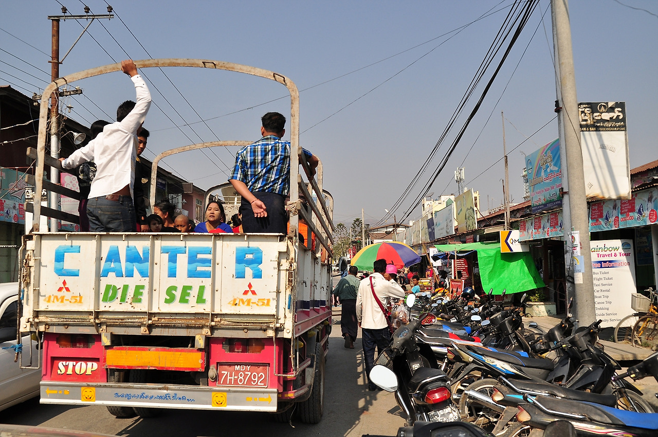 양곤에서 밤늦게 출발하는 버스를 타고 밤새 달려 아침 해가 뜰 무렵 낭쉐에 도착했습니다.