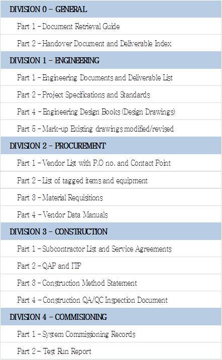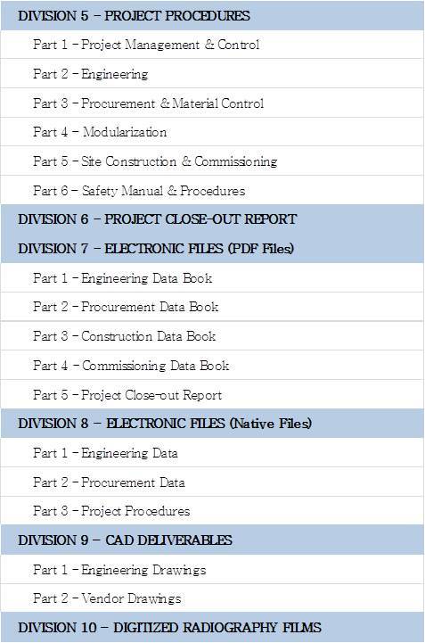 통상의 발주처는 플랜트 설비의 운영이나 후속 업무에 참고 용도로만 사용할 경우 기술문서만 제출할 것을 요구하는데 대체로 아래의 문서들이 해당됩니다.