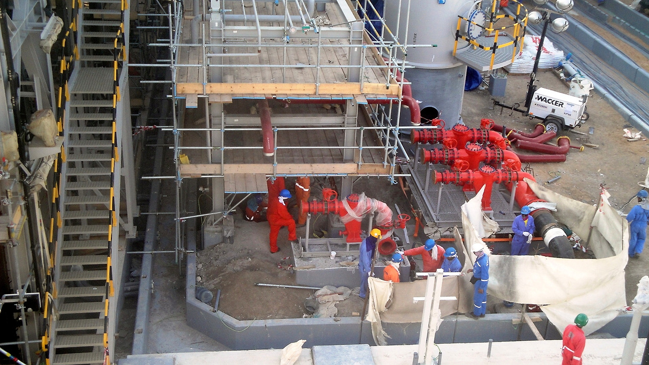 Deluge Valve를 설치하는 모습 - Module(or Skid)로 제작해서 현장으로 투입하고 현장에서 배관 연결작업을 한다