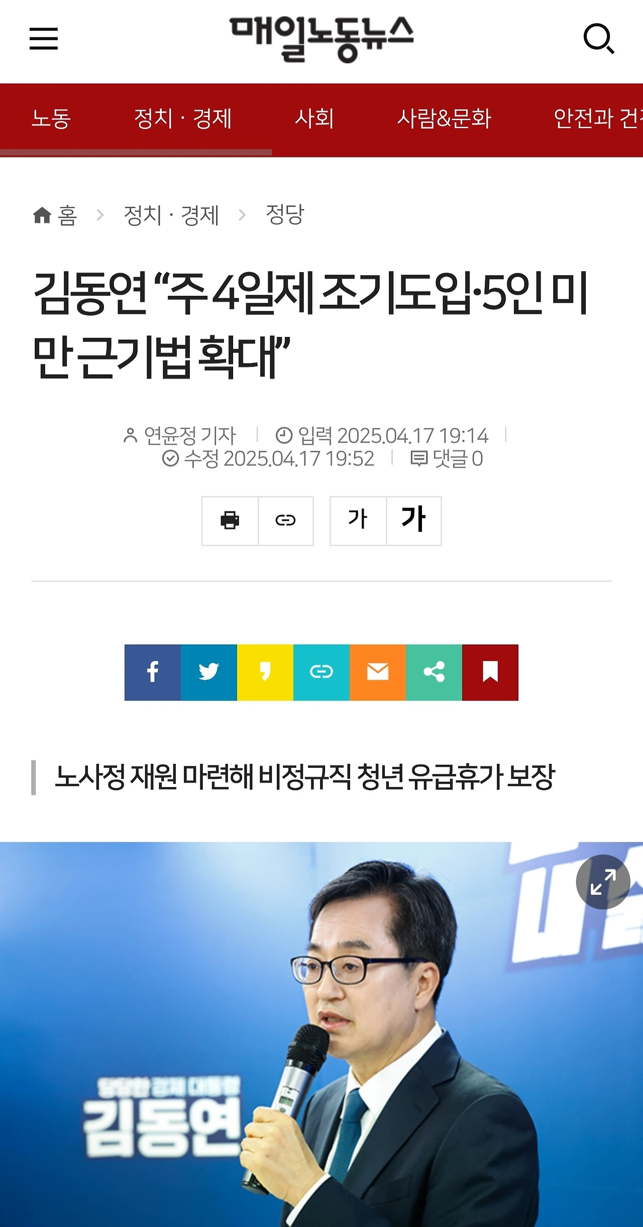 김동연 지사가 청년 유급휴가를 공약했다. 실현된다면, 비정규직 일자리에서 7년 이상 일한 청년은 6개월 동안 유급으로 쉴 수 있게 된다. 비용은 노사정에 분담시키기로 했다. 10년 주기 안식휴가도 함께 공약했으니, 다른 세대와 정규직 노동자가 소외되지는 않을 것이다.