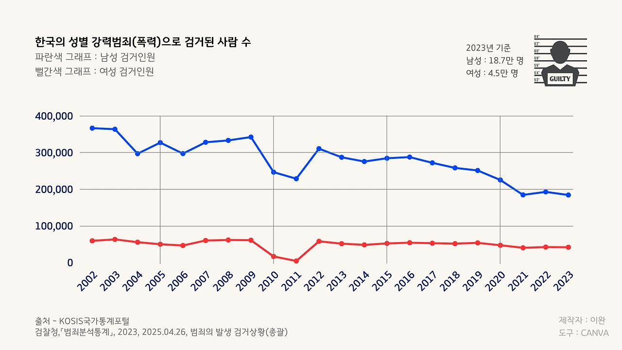 일상 속 폭력도 문제다. 여성을 노리는 범죄는 아직 안심할 만큼 통제되지 않고 있다. 어느 조직에서든 여성에게 과하게 추근덕거리는 사람은 꼭 있기 마련이다. 여성에게 외면당하면 폭력으로 보복하는 사람도 심심치 않게 나오고 있다. 남성이 여성만 공격하는 것은 아니지만, 여성의 경우 폭행 가해자보다 피해자가 항상 더 많은 것이 사실이다. 남성끼리의 폭행은 쌍방인 경우가 많지만, 여성을 대상으로 한 폭행은 일방인 경우가 많다.