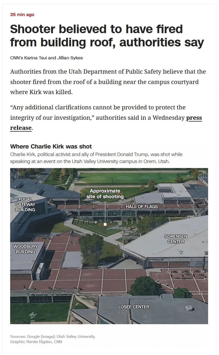 현지 시간 9월 10일, 유타 밸리 대학교 총격사건