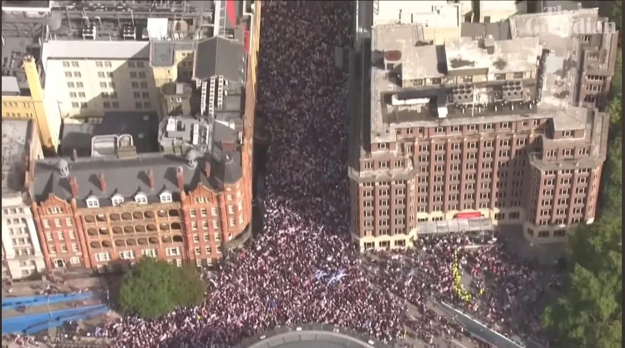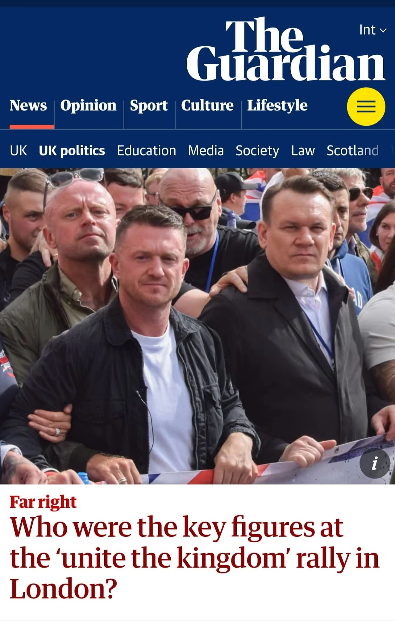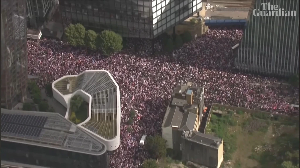 9월 13일 런던에서 대규모 반이민 시위가 열렸다. 일명, '왕국을 통합하라' 시위대는 유니언 잭과 성 조지 십자가 깃발을 휘날리며 워털루역과 트라팔가 광장을 가득 채웠다.