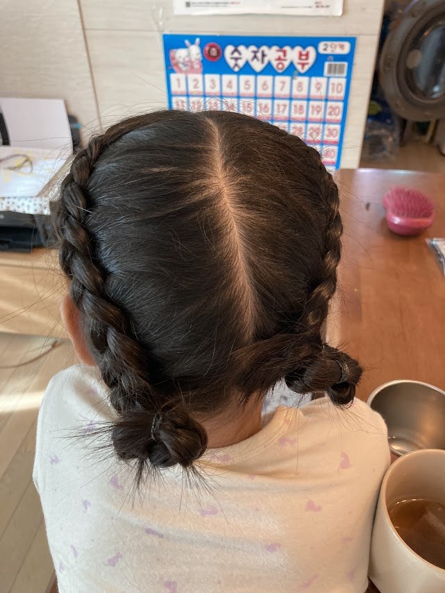 스타일이 마음에 들지 않으면 애써 묶은 고무줄을 훽하고 빼버리기도 했다. 화가 울컥 났지만 요구를 거부했을 시 편안한 등원은 물 건너가기에 삐져나온 머리를 다시 빗으며 마음수양을 했다.