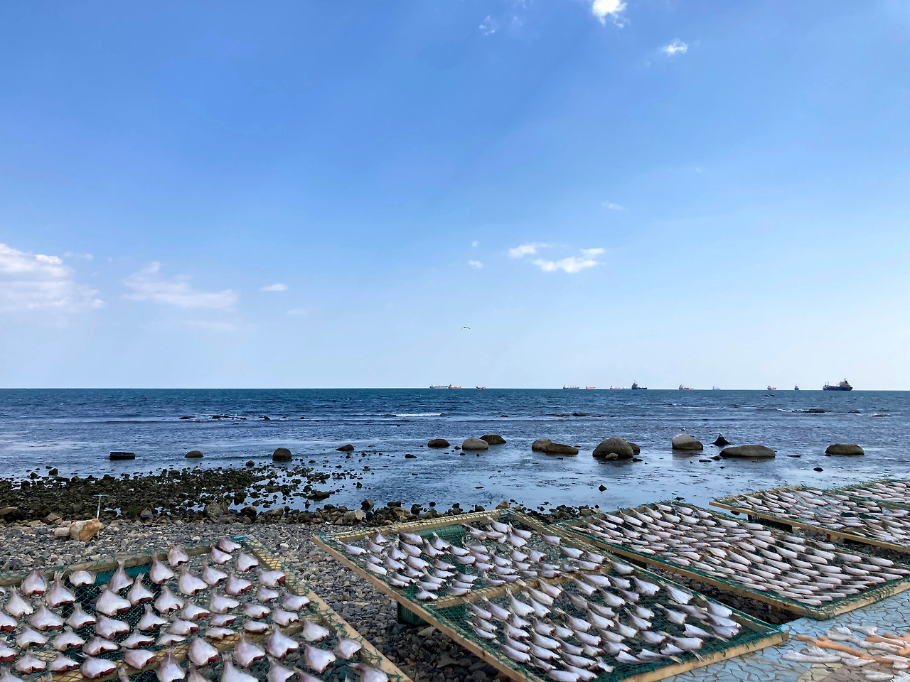 소금 끼가 하얗게 덮여 있는 연두색 해초 더미가 싱그럽다. 철망마다 이름 모를 생선들이 말려지고 있다. 익숙한 듯 익숙해지지 않는 사투리 사이를 걷는다. 무거운 장바구니 사이로 둘째의 손이 쓰윽 들어온다. 여간 귀찮은 게 아니다. 예전 엄마가 그랬든 씁~ 세모눈을 지어본다. 둘째는 모르는 척 해맑게 웃는다. 매일 보는 웃음 인 데도 마음이 무장해제된다. 아이 얼굴 따라 내 입꼬리도 올라간다. 경상도에만 있다는 물떡을 한 개 쥐어 준다. 딸은 어묵 국물에 짭조름 해진 가래떡 꼬치를 오물오물 맛있게도 먹는다.