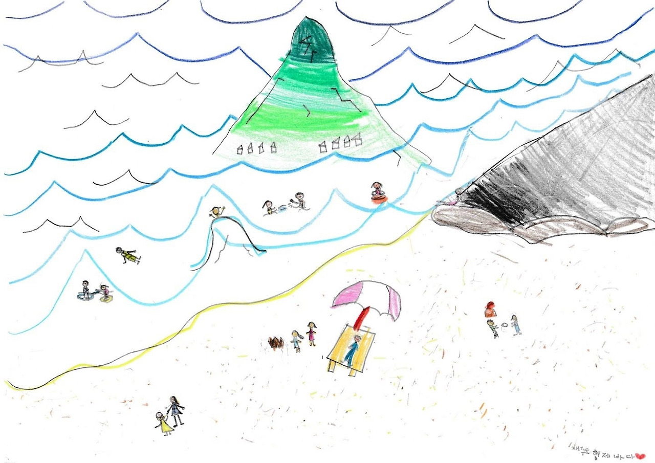 아이의 상상이 그림으로 표현되는 것을 즐거이 지켜보았다. 아이가 그린 바다그림은 여백이 보이지 않을 만큼 꽉 차 있었다. 조개 더미에 조개들은 모두 다른 표정을 하고 있었다. 구상할 것도 많고 그릴 것도 많은 아이는 한 개의 그림을 완성하는데 시간이 오래 걸렸다.