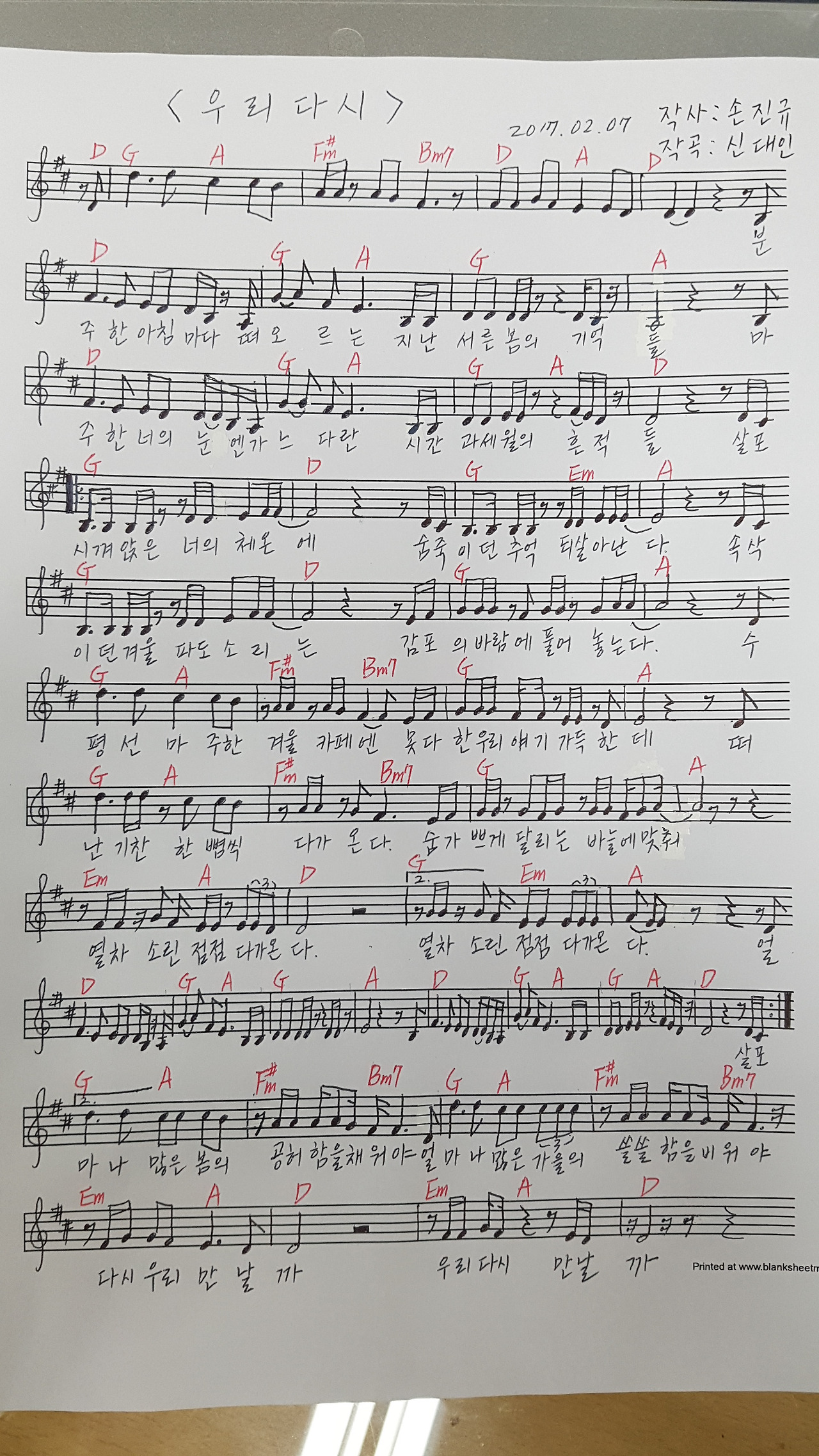 그렇게 '우리 다시' 곡이 태어났습니다.