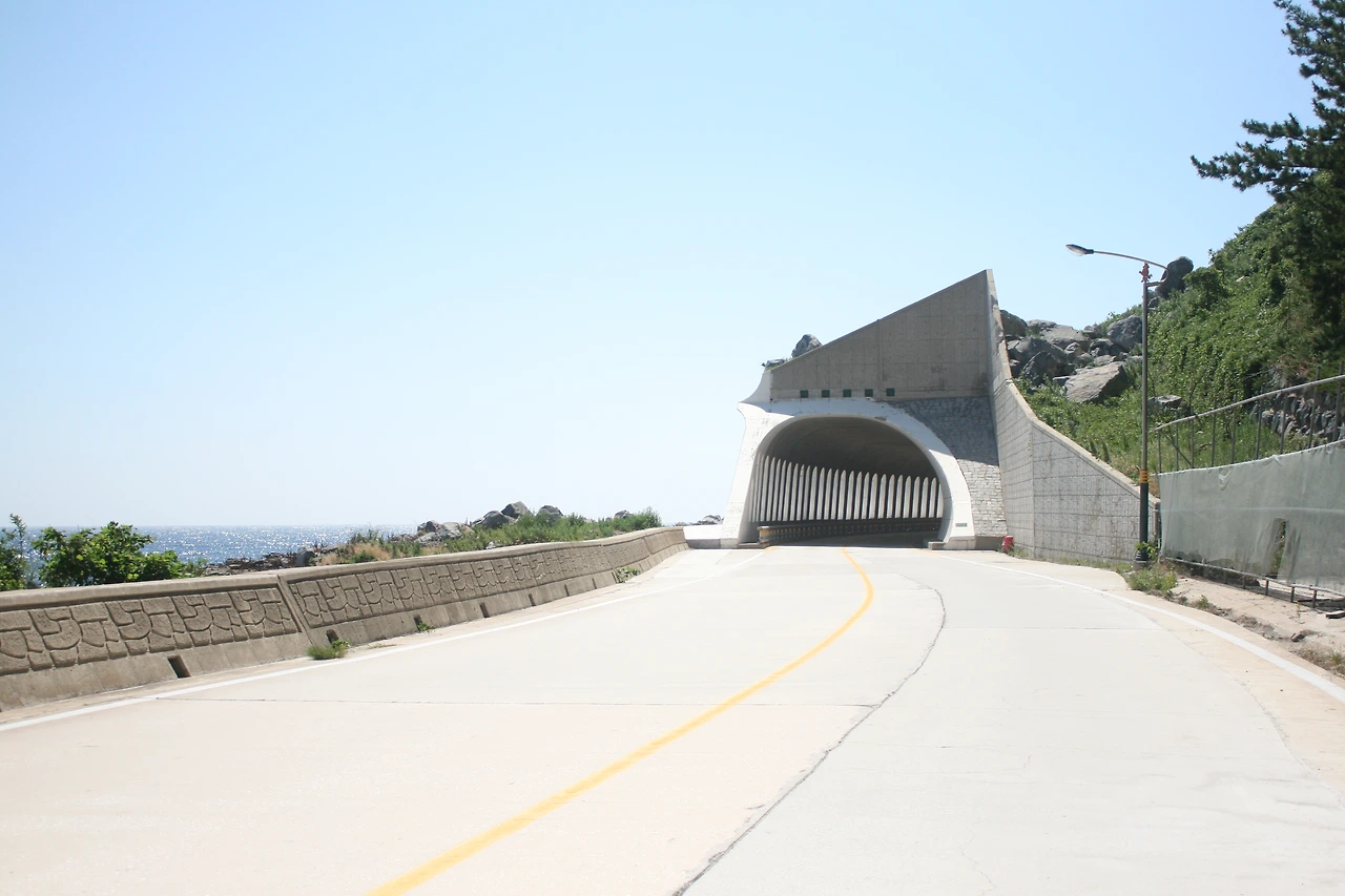 바다 쪽으로 듬성듬성 빗살 무늬가 있어 터널 속에서도 바다가 보인다.
