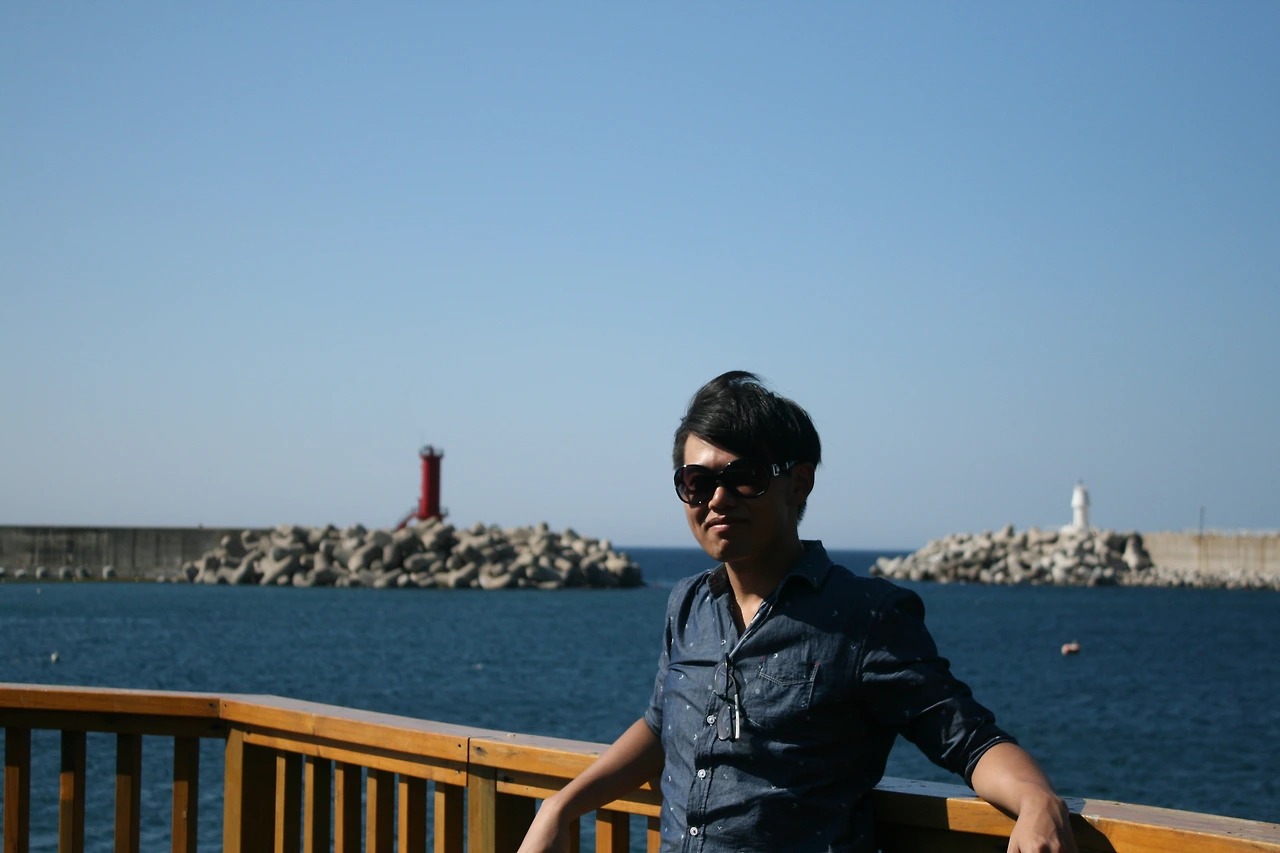 현포항에는 바다 쪽으로 짧지만 다리가 놓여있고 다리 끝에 정자가 있다.