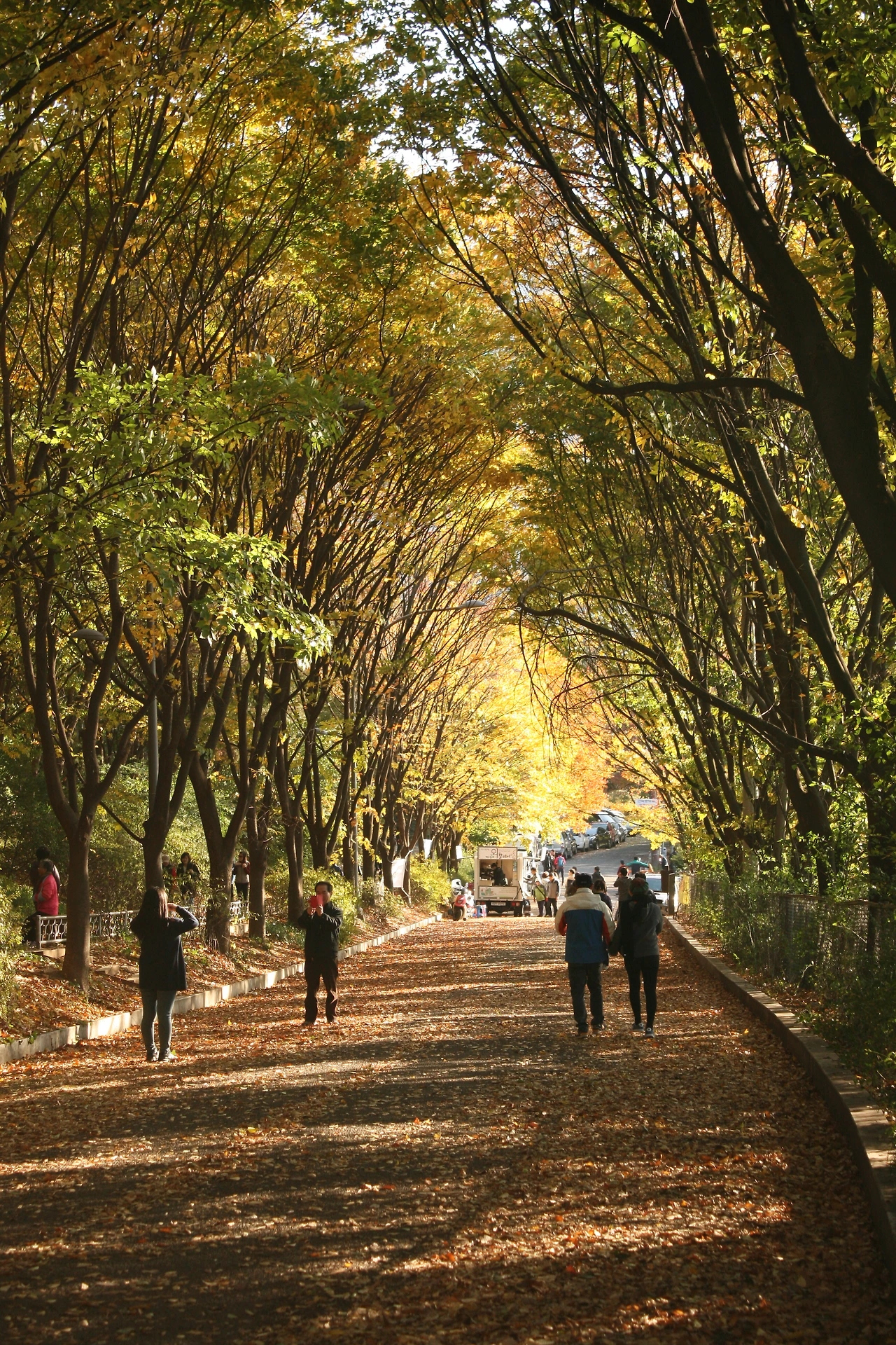 총길이는 1.2Km 정도 남짓, 그 길 좌우로 줄지어선 나무에서 갈색과 노란색 낙엽들을 쏟아낸다.