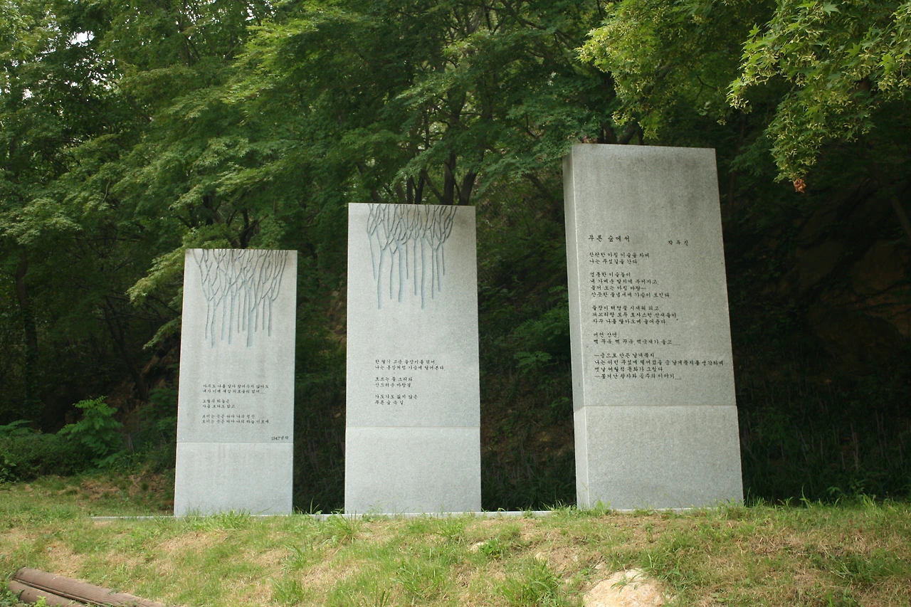 안산자락길에는 이 두 문학가의 작품 외에 다른 문학가의 작품을 새긴 바위가 곳곳에 놓여 있다.