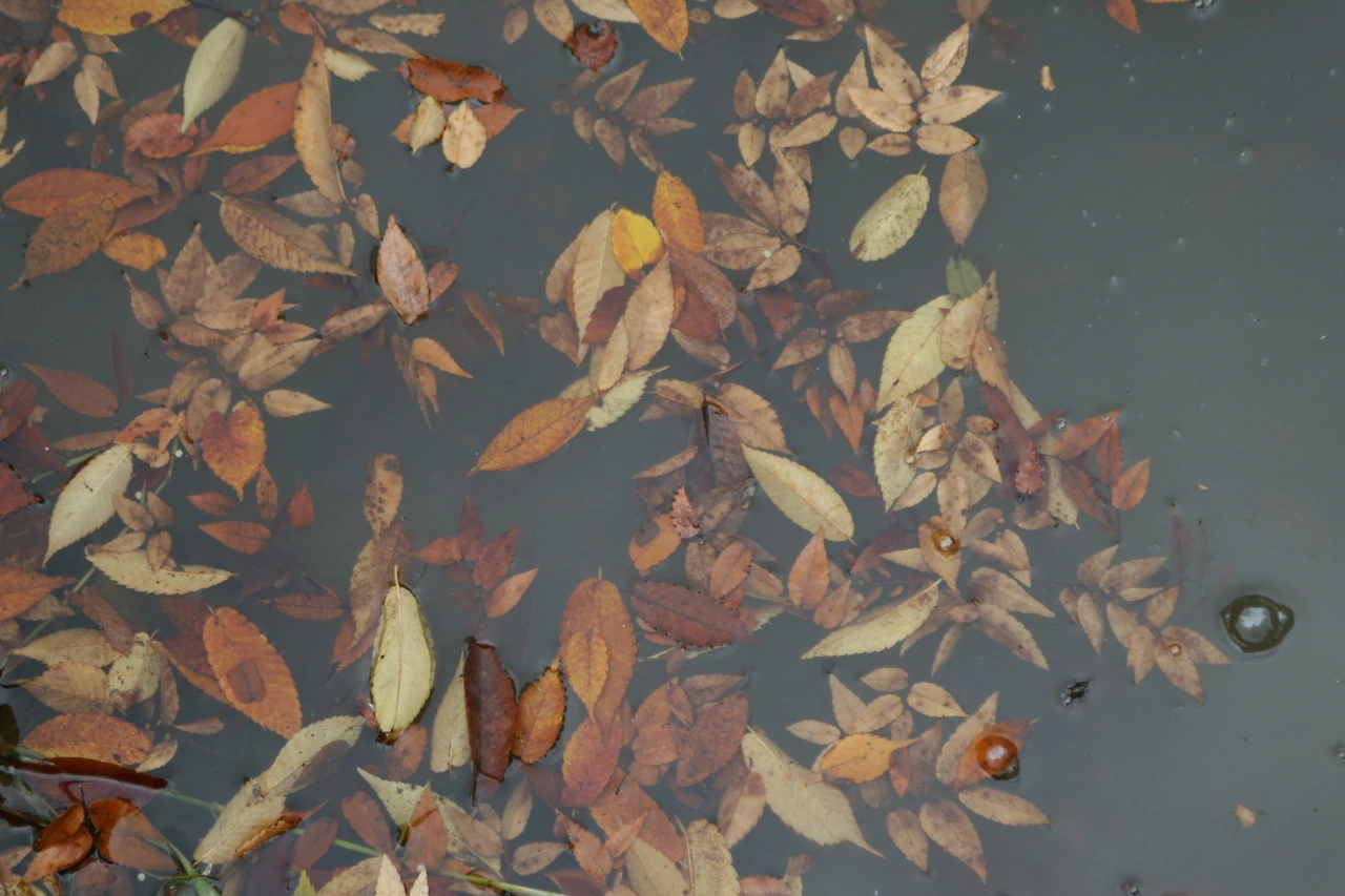 떨어진 낙엽과 남은 낙엽의 싸움이 팽팽하다.